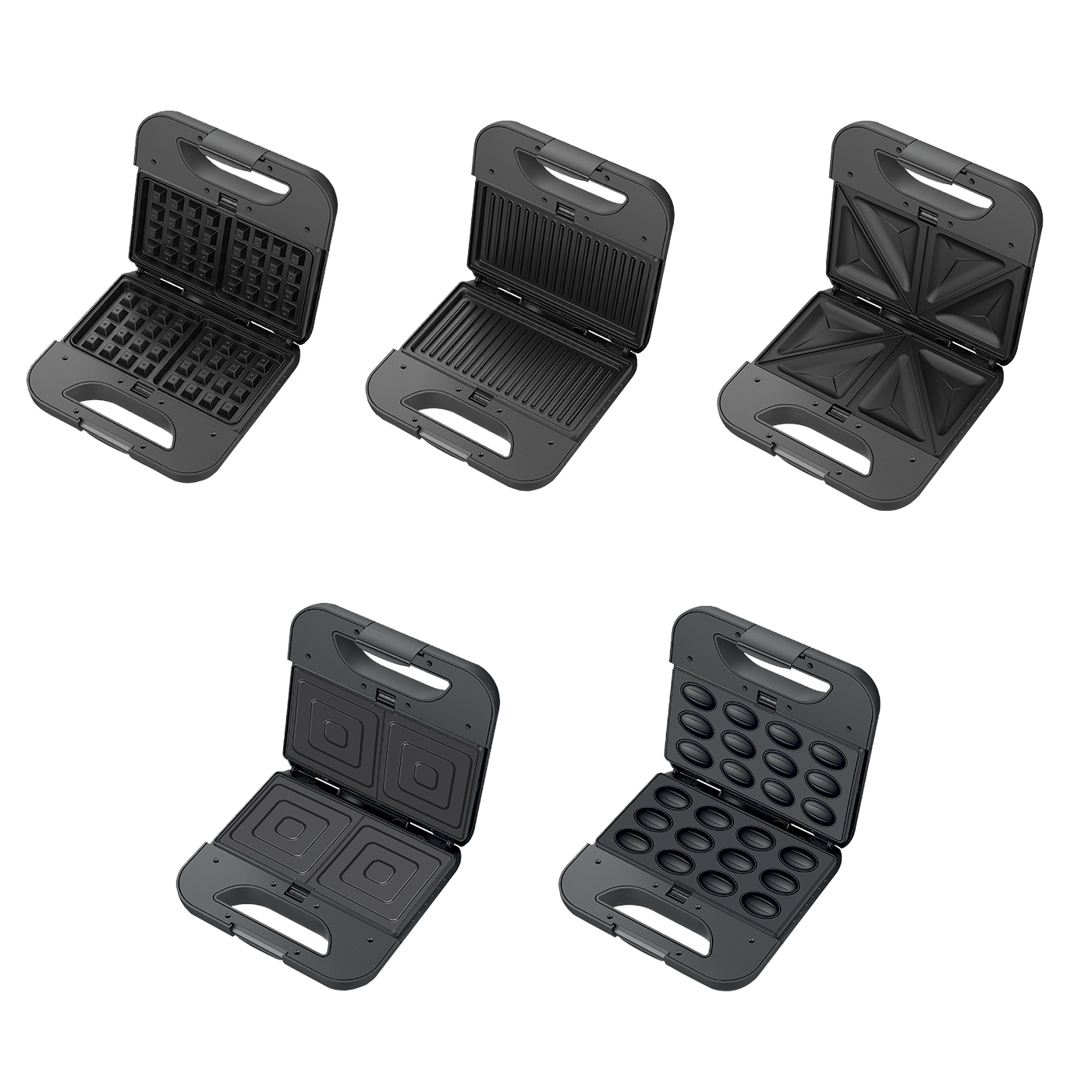 Toster 800 W, 5u1, veličina ploče 21.6 x 12 cm, ploče od nehrđajućeg čelika, 5 različitih ploča, sustav zaključavanja, indikator rada, automatska kontrola temperature, neljepljiva uklonjiva ploča jednostavna za čišćenje, uspravno odlaganje uz uštedu prostora