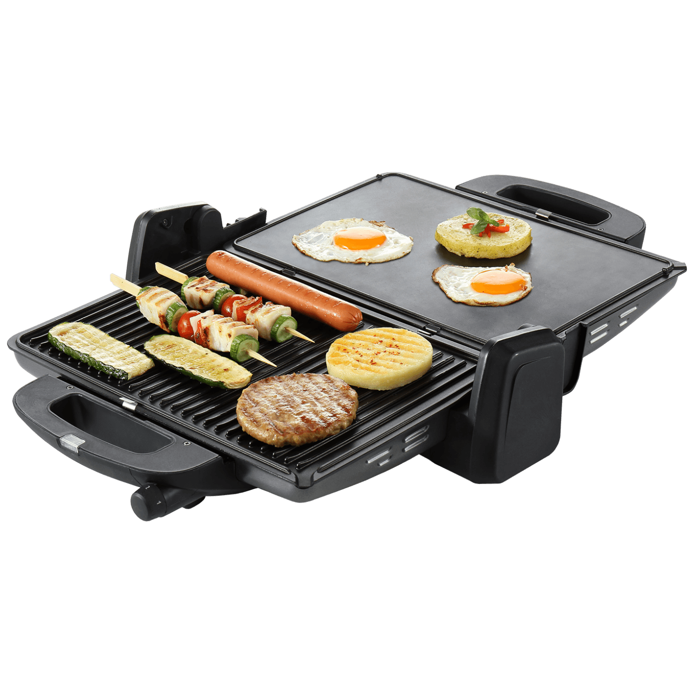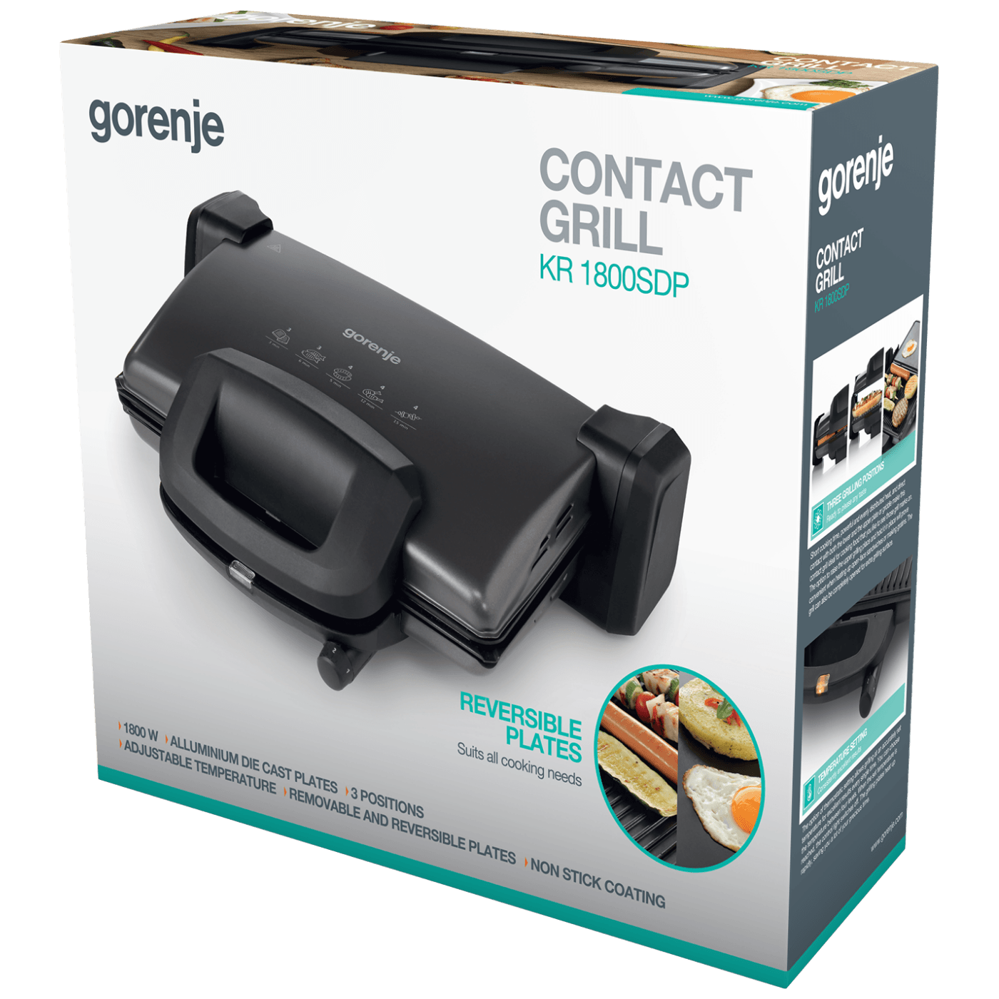 Kontaktni grill, snaga 1800W, promjenjive ploče s obje strane, aluminij, podloga sa slojem protiv ljepljenja namirnica za optimalne rezultate, rebrasta ploča za pečenje, ploče presvučene teflonom, podesiva visina, pohranjivanje u vertikalnom položaju, 4 nivoa temperature, toplotni indikator, regulirana temperatura, jednostavno pečenje, ručka za prenošenje, kućište od lakiranog lima, širina radne ploče za pečenje 34 cm, dubina radne ploče za pečenje 23 cm, dužina priključnog kabla 0,9 m