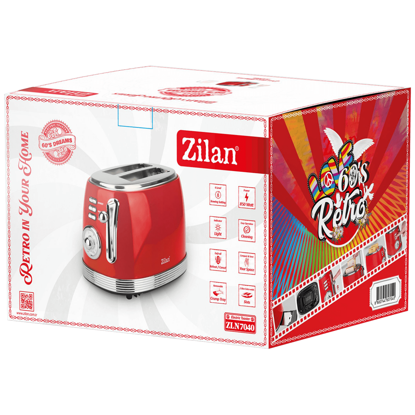 Zilan Toster, 2 otvora za kruh, 6 nivoa grijanja, 850W, Retro - ZLN7040