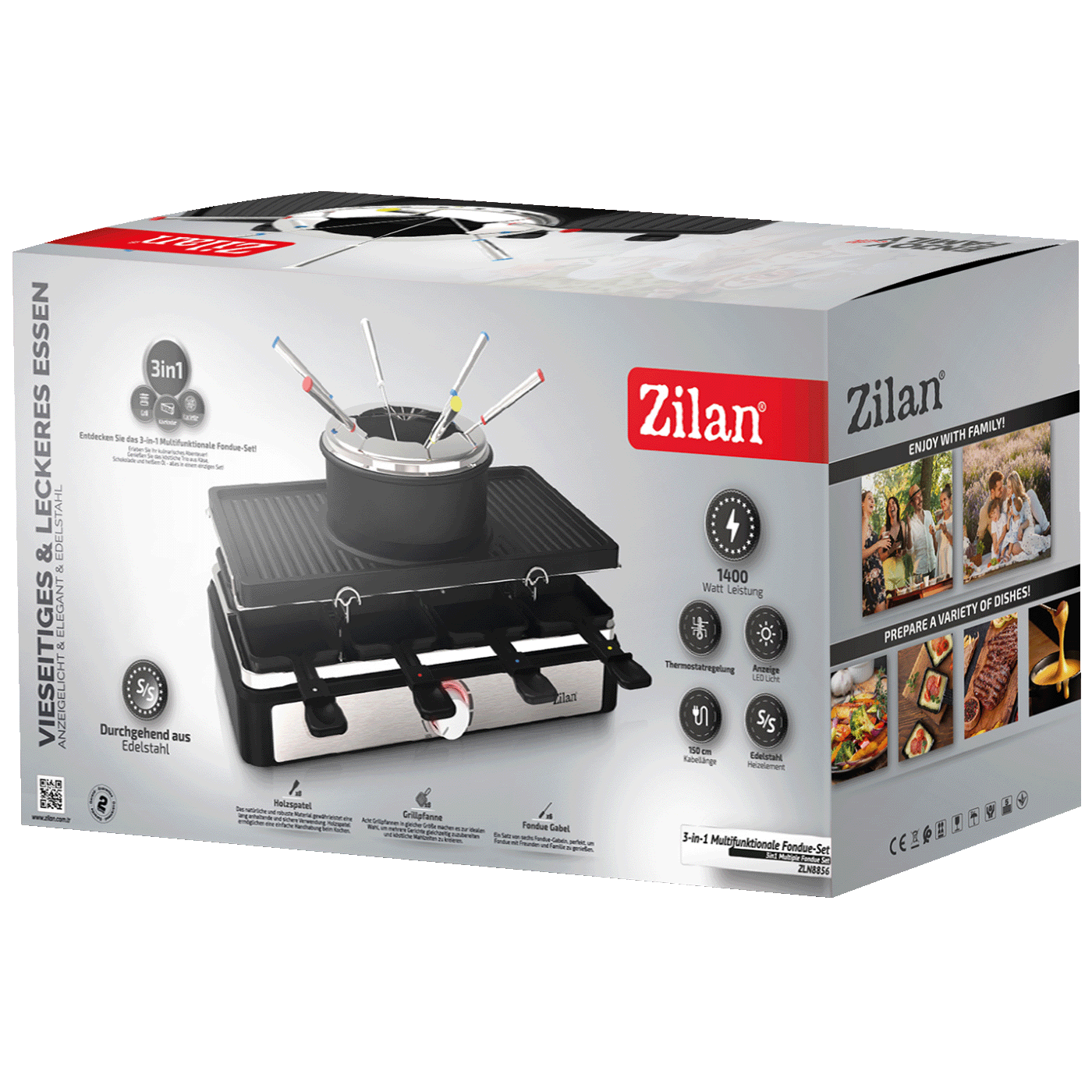 Zilan Električni Roštilj / Raclette / Fondue od sira, 3u1, 1400W - ZLN8856