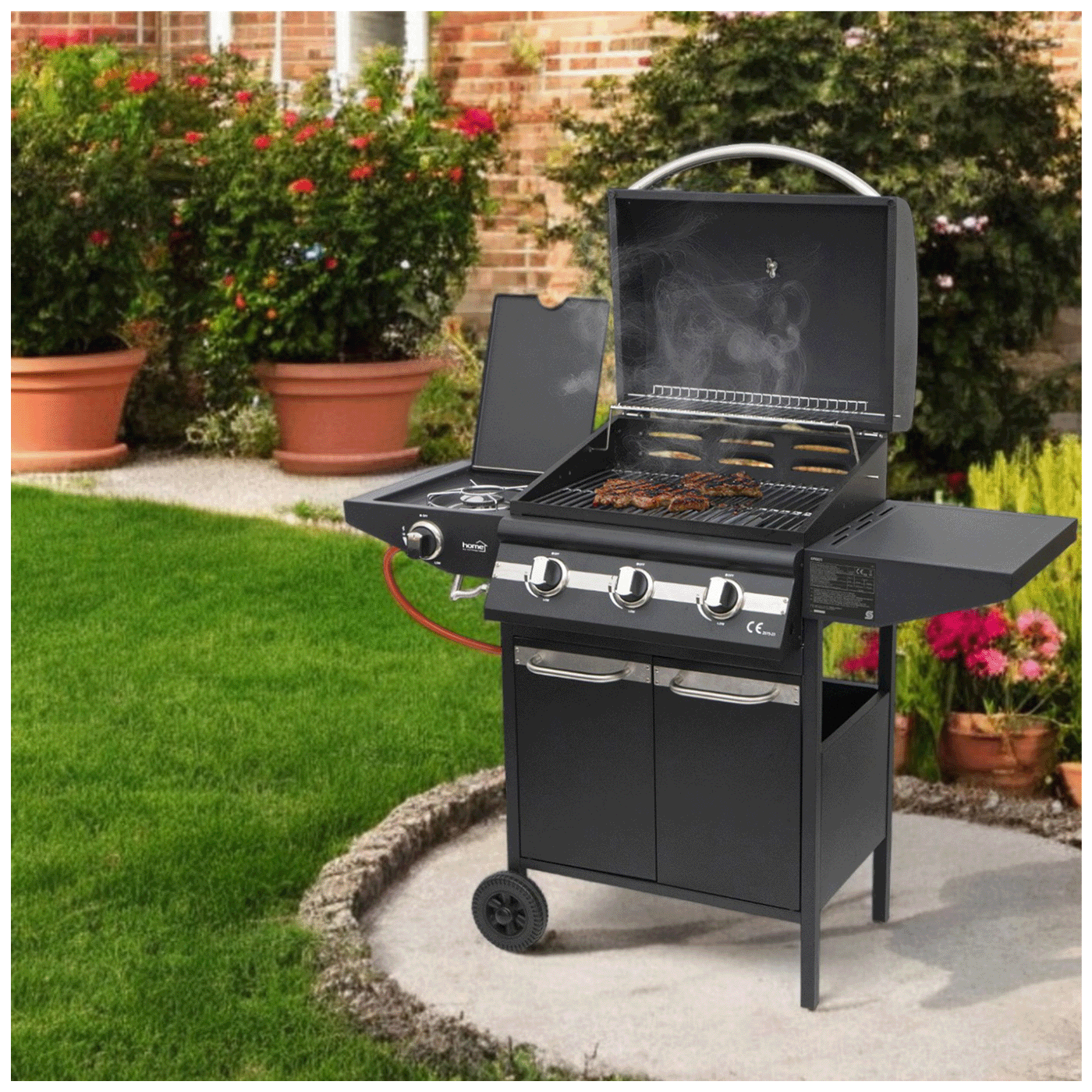 Plinski roštilj Home GRG01 idealan je izbor za one koji traže pouzdan, visokoučinkovit i jednostavan vanjski roštilj. Uređaj ima tri zasebno upravljiva glavna plamenika i praktičan bočni plamenik, tako da možete istovremeno pripremati nekoliko jela - bilo da se radi o mesu, povrću ili čak umacima. Čist dizajn, kućište od čelika s praškastim premazom i ugrađeni termometar ispunjavaju sve zahtjeve za elegantno i učinkovito vrtno roštiljanje.