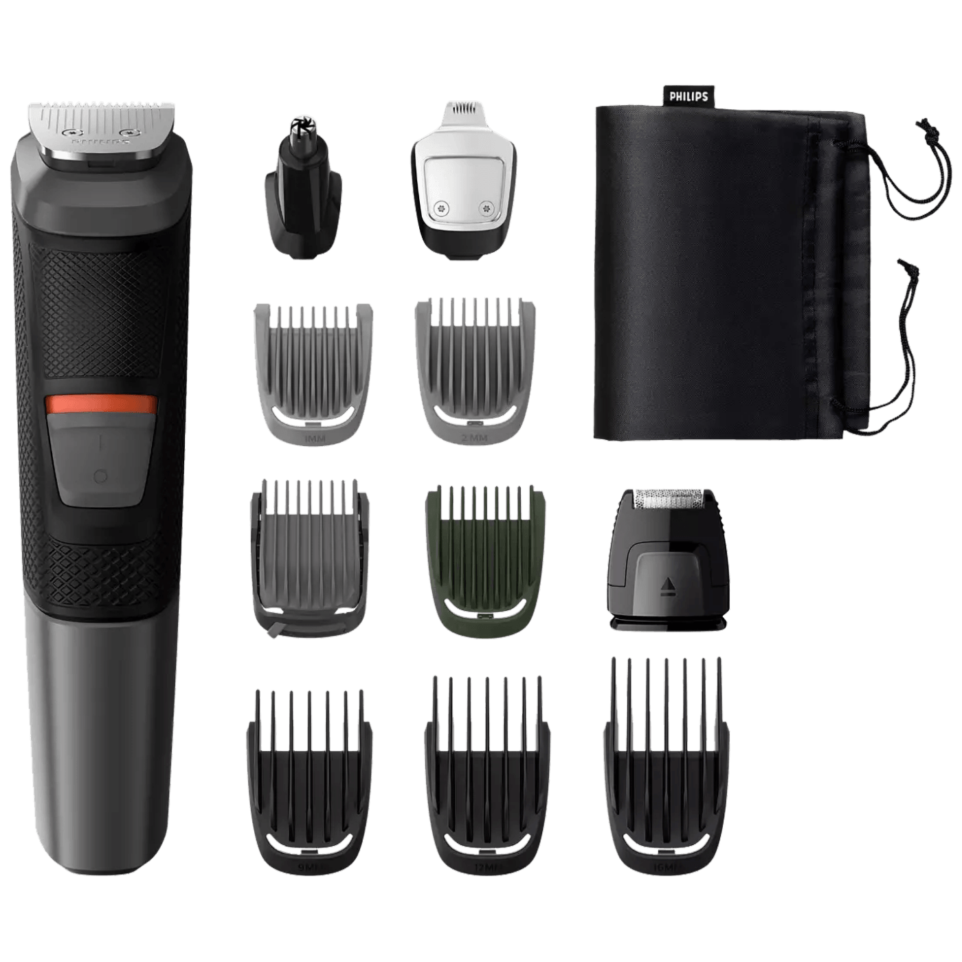 Brzo dotjerajte dlačice na licu i kosu uz sedam štitnika za rezanje. 2 češlja za trodnevnu bradu od 1 mm i 2 mm, prilagodljivi češalj za bradu, 3 češlja od 9 mm, 12 mm i 16 mm te 1 češalj za dlačice na tijelu.