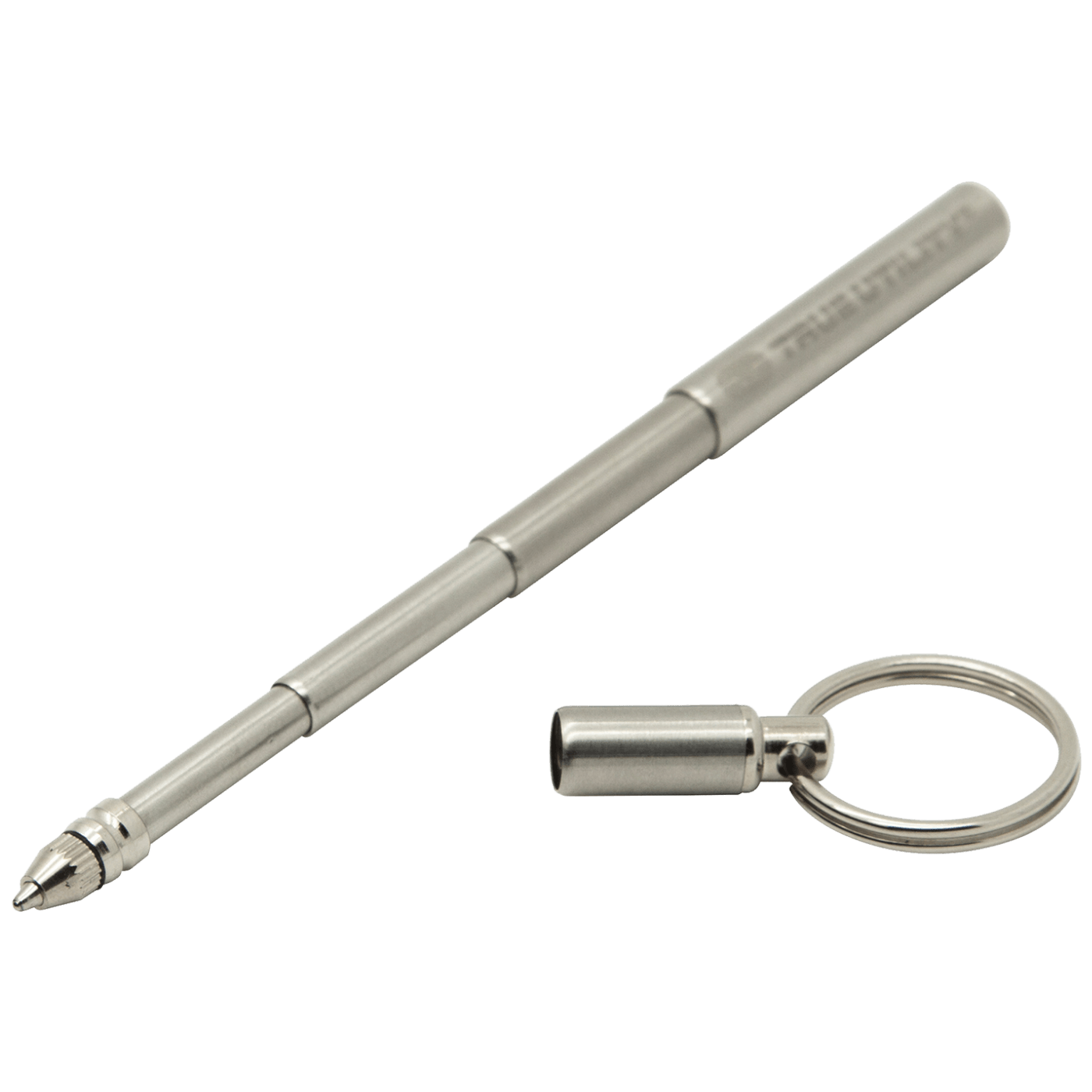 Privjesak za ključeve, olovka, Telepen, poseban teleskopski dizajn, teleskopsko tijelo od brušenog nehrđajućeg čelika, aluminijsko kućište, 3 umetka za olovke, magnetski kraj
