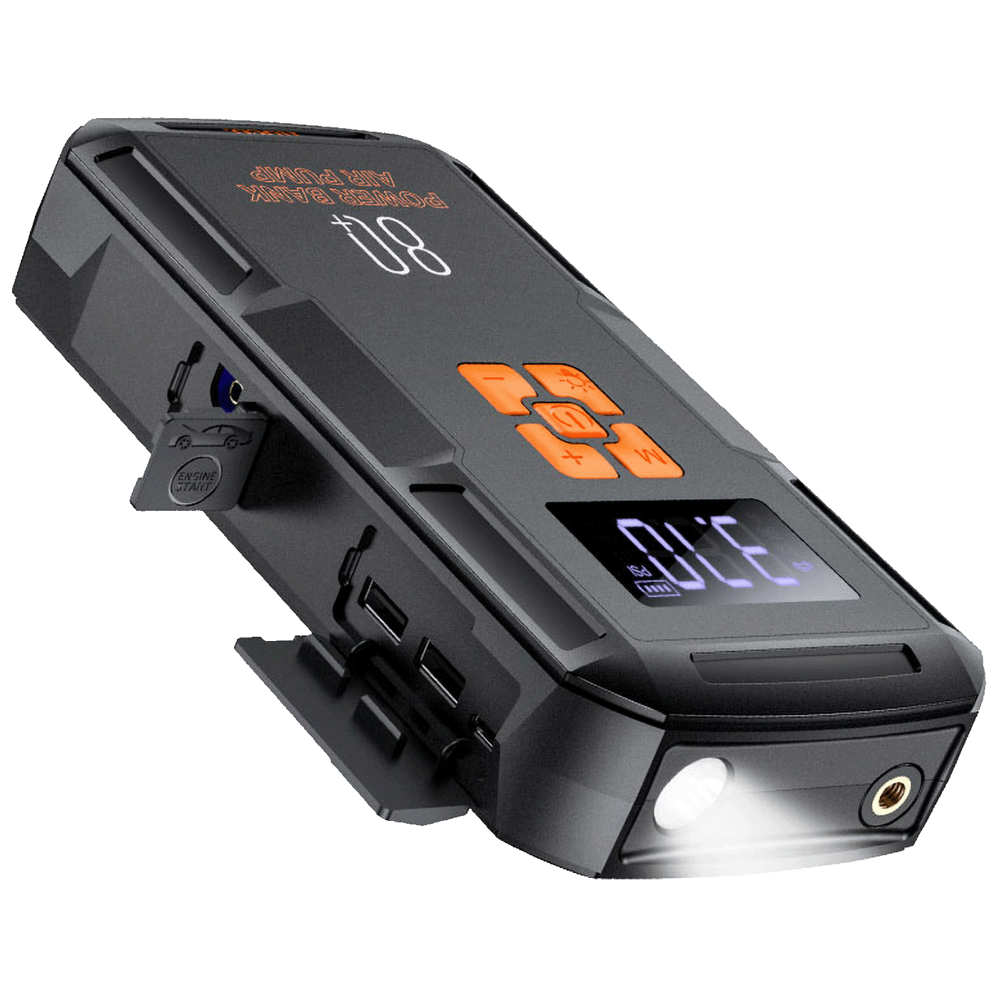 • Indikacija: LED digitalni zaslon razine snage, 4 vrste jedinica tlaka zraka (PSI, BAR, KPA, Kg/cm²), 4 načina napuhavanja (auto, motocikl, bicikl, lopta).
