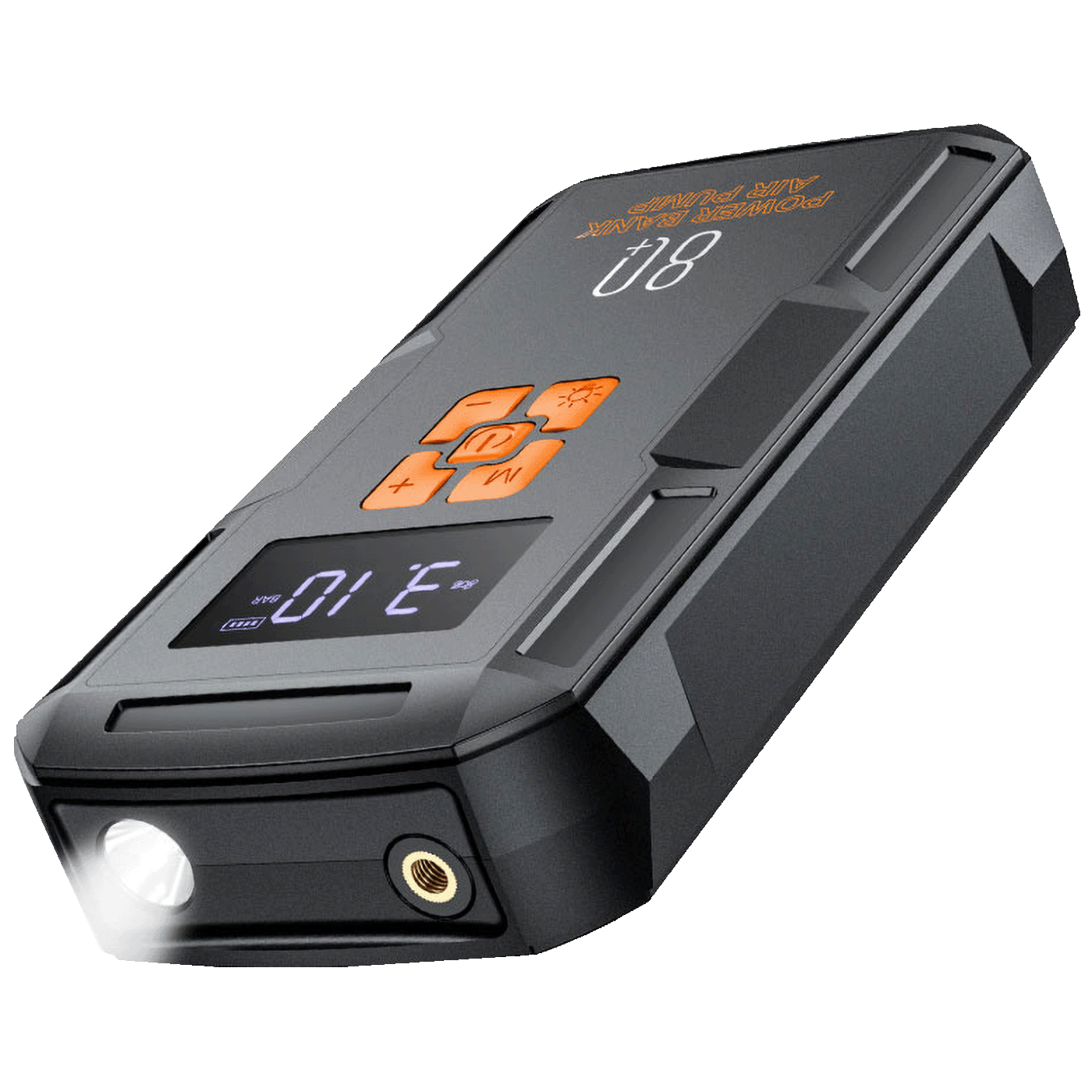 • Vrijednost tlaka napuhavanja: 0-10,3 bara (0-150PSI). Četiri načina napuhavanja (automobilska guma, motociklistička guma, biciklistička guma, košarkaška lopta).