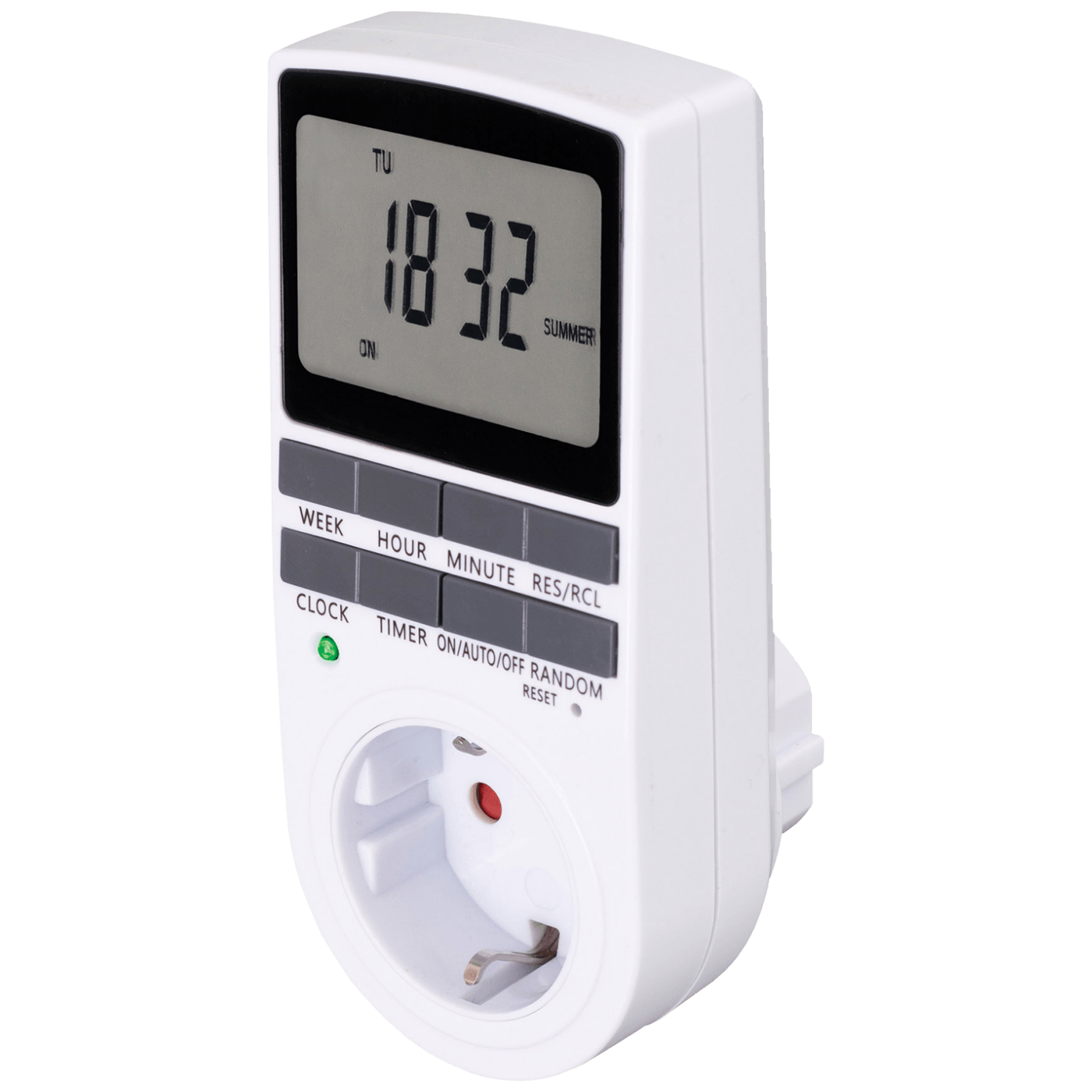 Digitalni programator vremena, tjedni timer, 10 programa sa vremenskim intervalima od 1 minuta, ponavljajuči dnevni programi sa 15 kombinacija, napajanje 250 V ~ / 16 (2) A / 3680 W, ugrađena baterija za držanje memorije u slučaju nestanka el.energije, dimenzije 138 x 60 x 39 mm