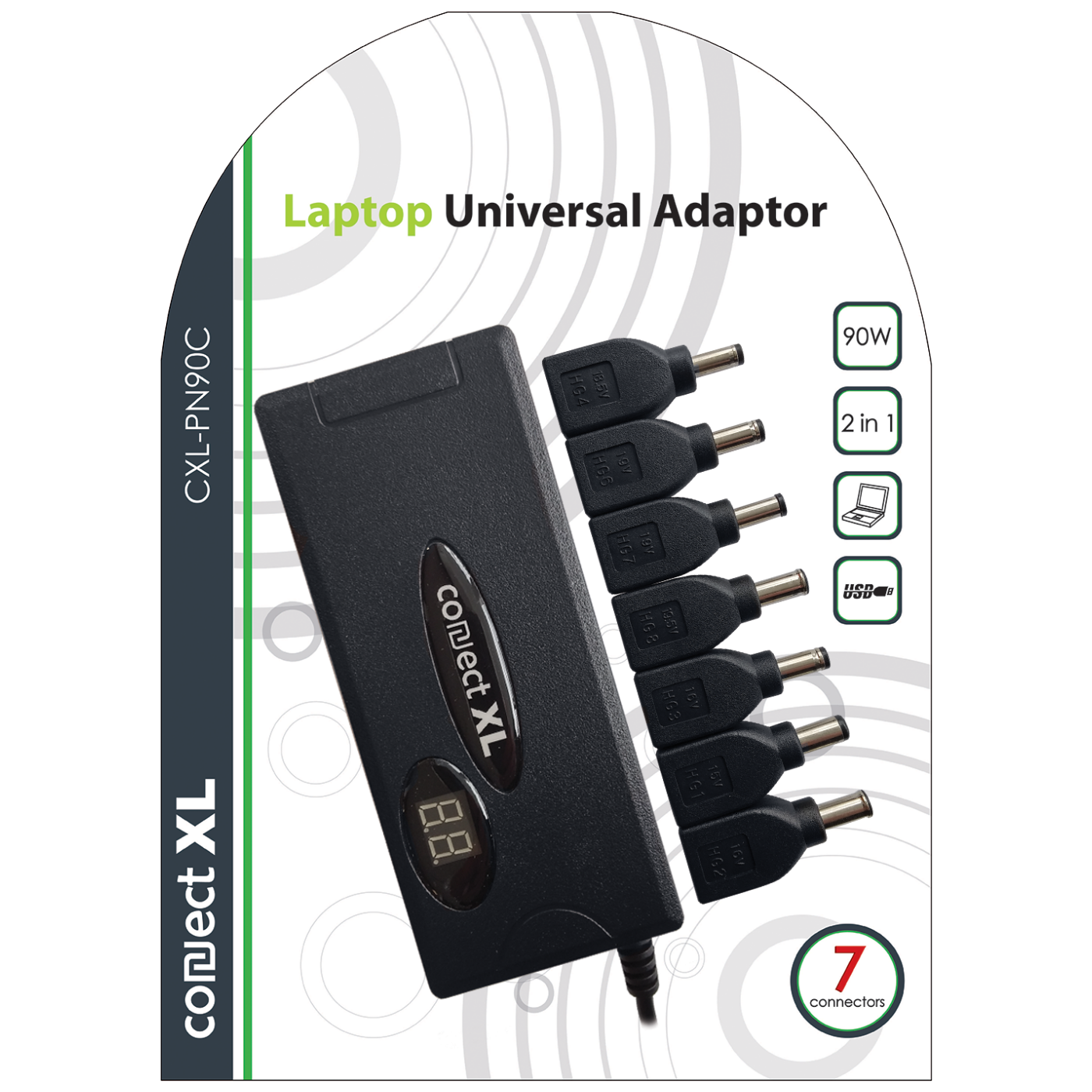 Connect XL Adapter za laptop,univerzalni, 90W, 2u1 AC+Auto, LCD display - CXL-PN90C