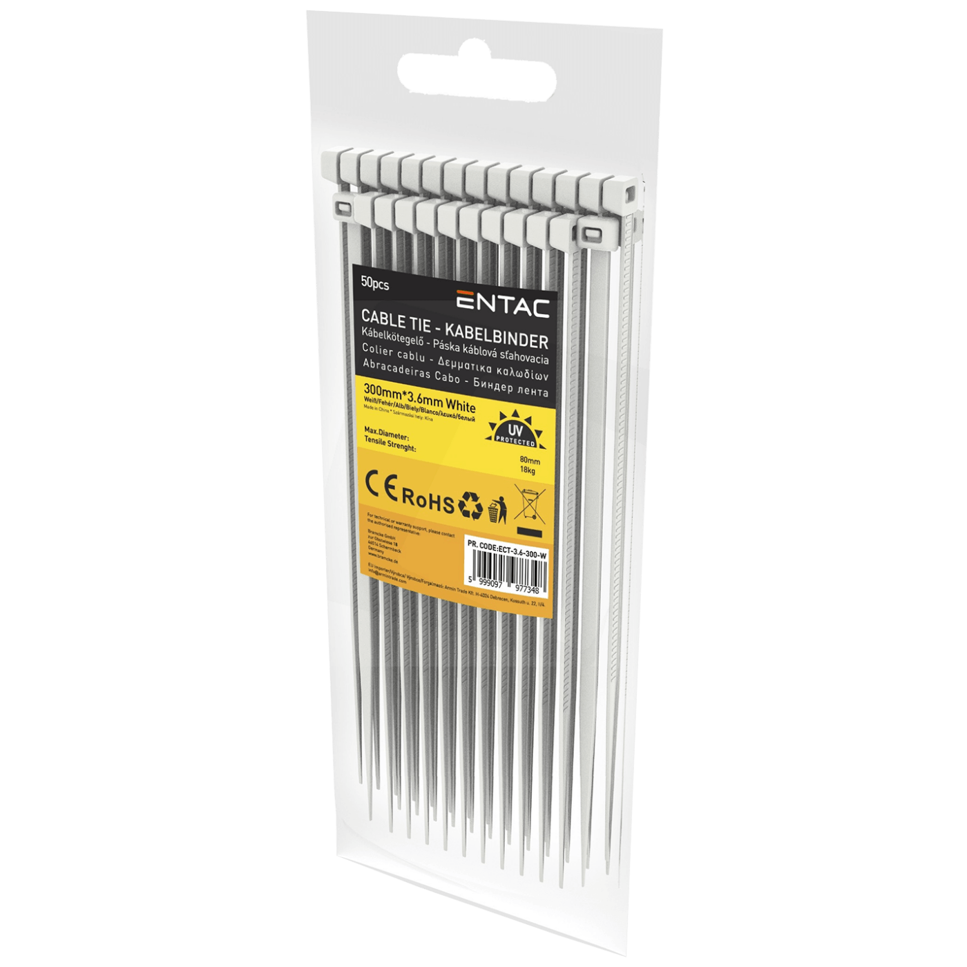 Entac Plastične vezice 3,6mm x 300mm, 50 kom. - Cable Tie 3.6mmx300mm White