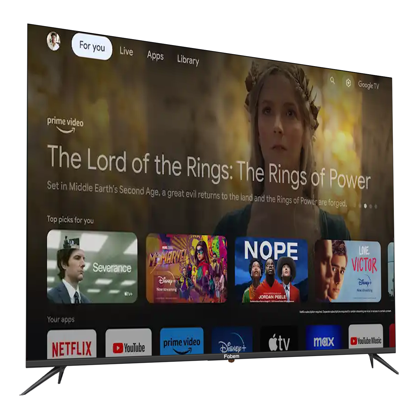 Sa svojim Google TV operativnim sustavom, Ultratanki okvir Fobem MT50EG8000F nudi jednostavan pristup popularnim aplikacijama kao što su Netflix, YouTube, Spotify.