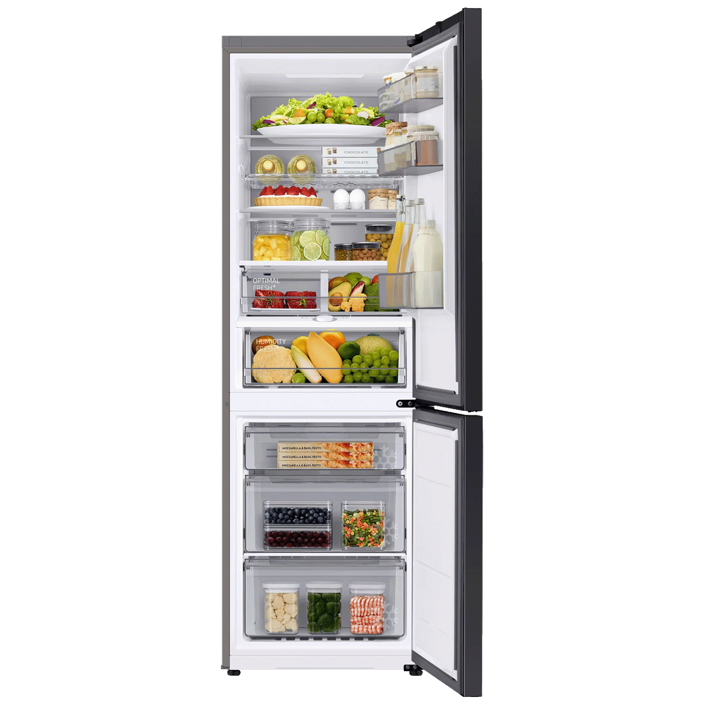 Pohranite više hrane u iznimno velikom 390-litarskom hladnjaku standardnog dizajna dubine 600 mm, zahvaljujući kojemu će se s lakoćom poravnati s Vašim kuhinjskim ormarićima. Visokoučinkovita izolacija SpaceMax™ tehnologije stijenke hladnjaka čini mnogo tanjima. Tako stvara više prostora za pohranu bez stršenja izvan Vaše radne površine.