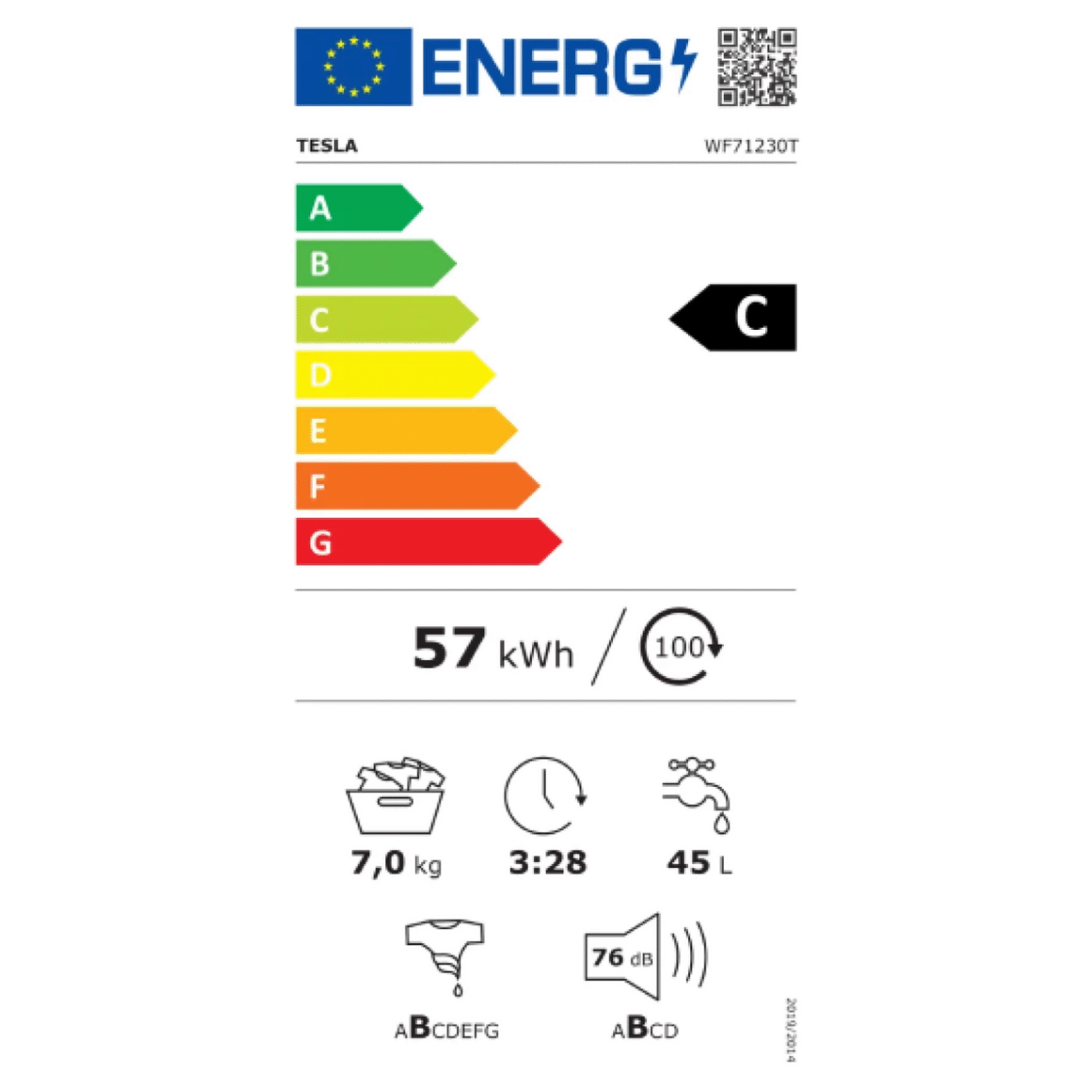 Tesla Mašina za veš, 1200 obrtaja, 7 kg veša, Inverter, C - WF71230T