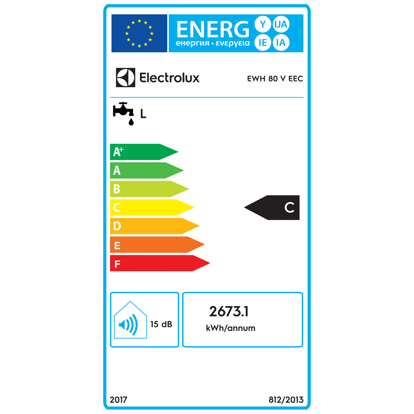Electrolux Bojler 80 lit., Cijevni električni grijač (TEN), 2kW, IPX4 - EWH 80 V EEC
