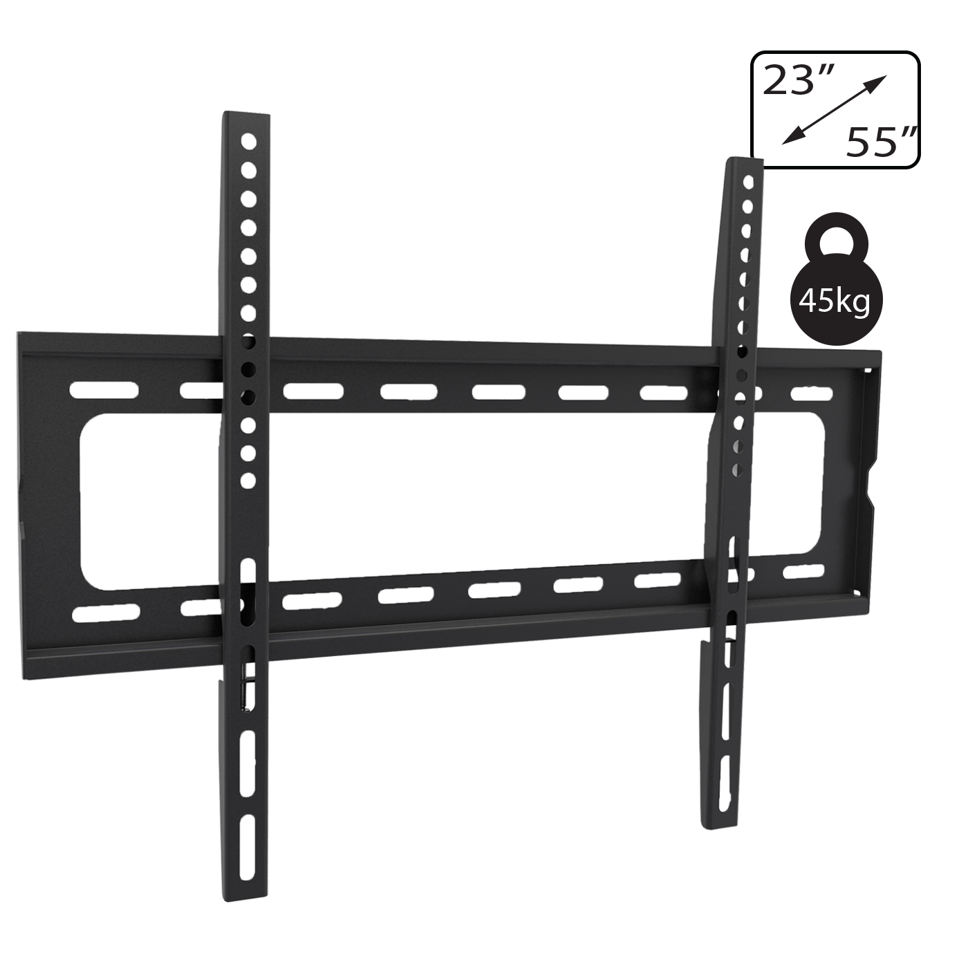 Zidni nosač za TV prijemnike od 23 " do 55", maximalno opterećenje 45 kg, udaljenosto od zida 24 mm, VESA 100x100, 200x100, 200x200, 300x200, 300x300, 400x200, 400x300, 400x400, jednostavno za montažu i rukovanje, sadrži set vijaka, libelu i upute za uporabu