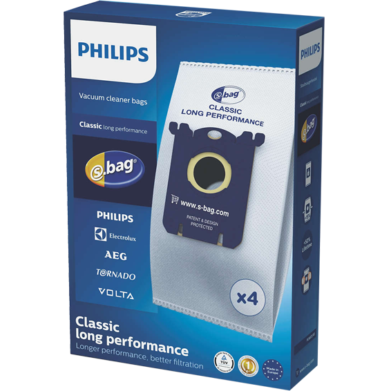s-bag® je univerzalna vrećica za prašinu za sve usisavače s vrećicom tvrtki Philips i Electrolux (Electrolux, AEG, Volta, Tornado). Prilikom kupnje zamjenskih vrećica samo potražite logotip s-bag®. Uporabom vrećica koje nisu originalne možete oštetiti usisavač.