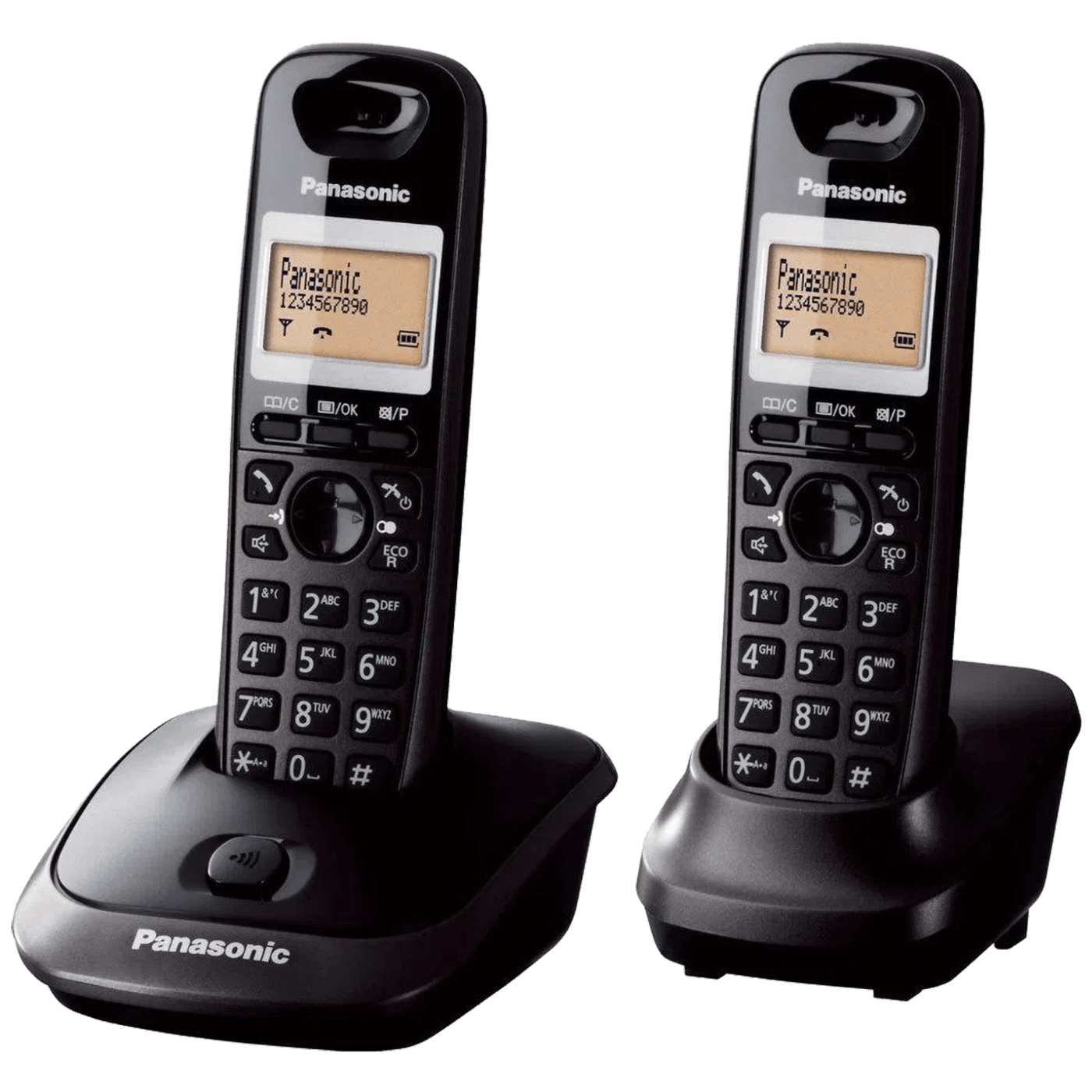 Bežični telefon KX-TG2512 sa 2 slušalice i 1 bazu s ugrađenim punjačem.