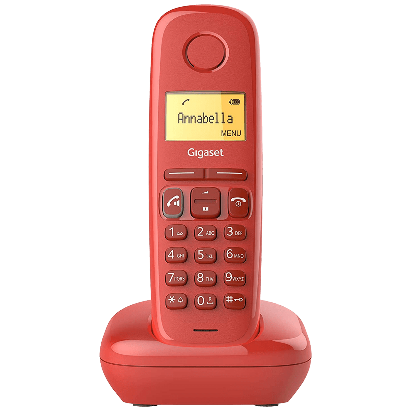 Gigaset A270, bežični DECT analogni telefon, telefonski imenik za 80 imena i brojeva, prikaz broja pozivatelja, lista zadnjih 25 propuštenih poziva, 10 melodija, LCD 1.5" display, pozadinsko osvjetljenje, prikaz vrijeme / datum, alarm...
