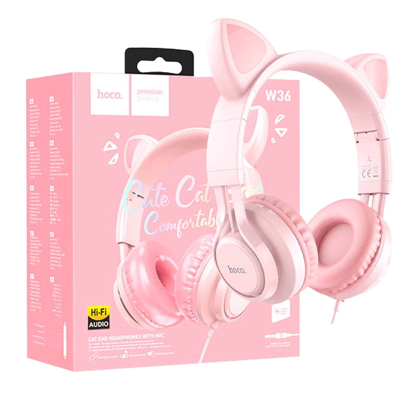 hoco. Slušalice sa mikrofonom, mačje uši, pink - W36 slušalice Mačje uši,Pink