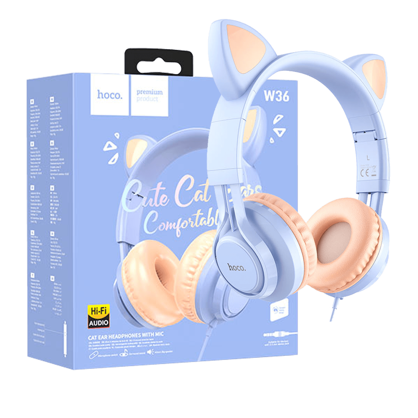 hoco. Slušalice sa mikrofonom, mačje uši, plava - W36 slušalice Mačje uši,Dream Blue