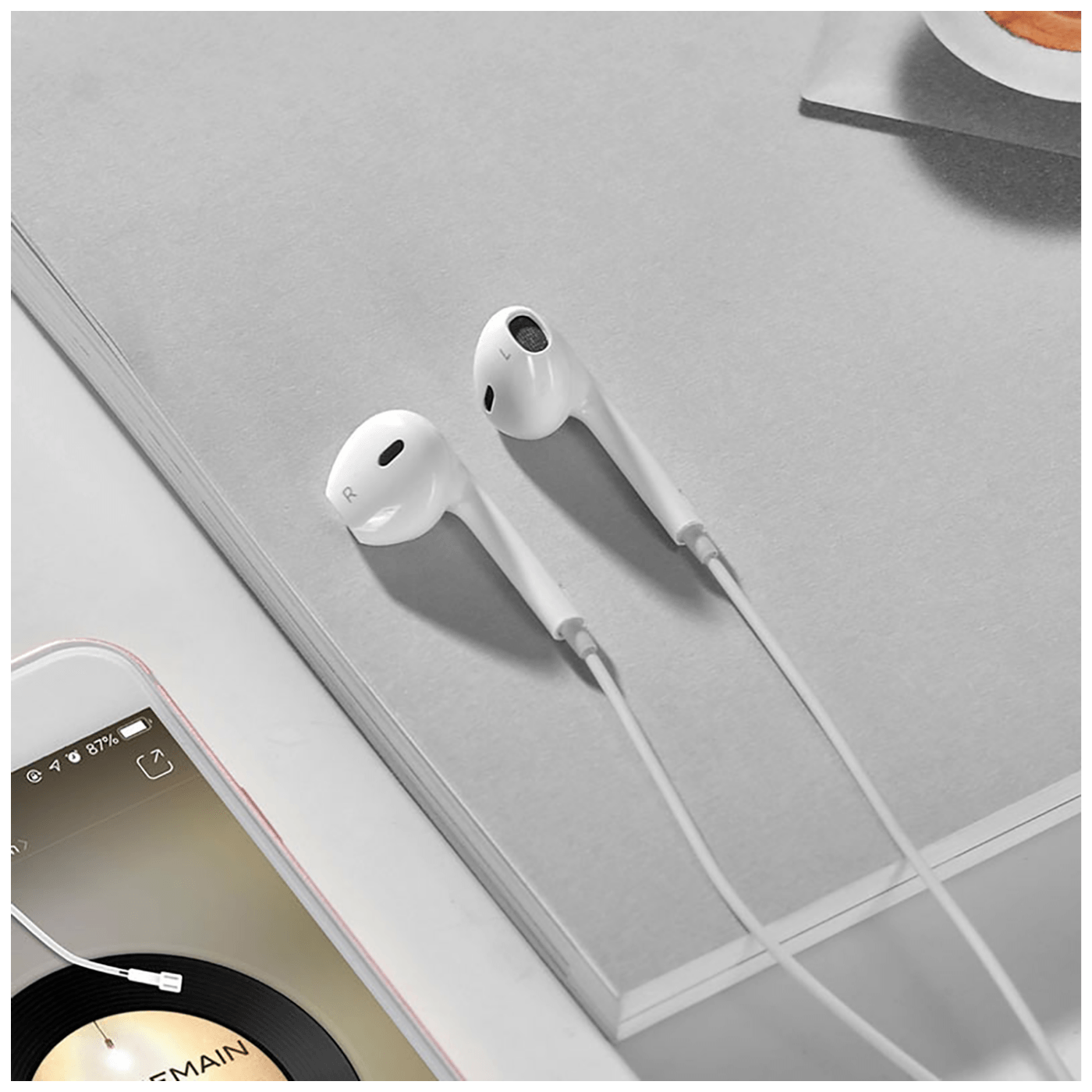 Slušalice sa mikrofonom, Lightning, handsfree funkcija, dužina kabela 1.2 met, zvučnik Ø 14 mm, kontrole na kabelu, kontrola glasnoće, handsfree, lagane i izdržljive, ugodne za nošenje, bijela boja