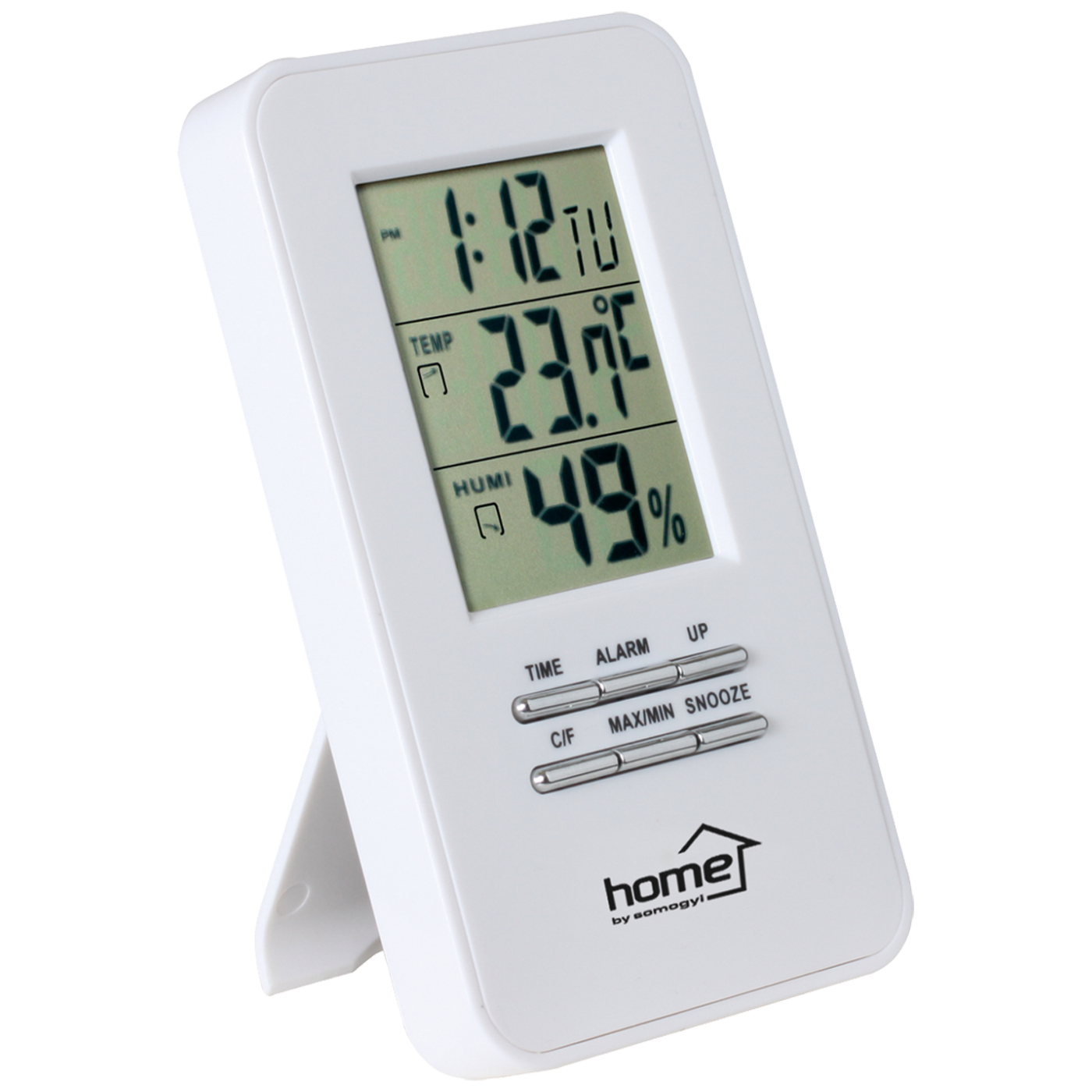 Vremenska stanica mjerenje temperature, vlažnosti zraka, budilica. Unutarnja temperatura (-9 - +50°C), unutarnja vlažnost zraka (RH 20% - 90%), prikaz min i max mjerene vrijednosti, prikaz sata 15 / 24, datum, dani u tjednu. Budilica funkcijom odlaganja (8 min). Samostoječi, mogucnost postavljanja na zid,. Napajanje 2 x 1,5V AAA baterije.