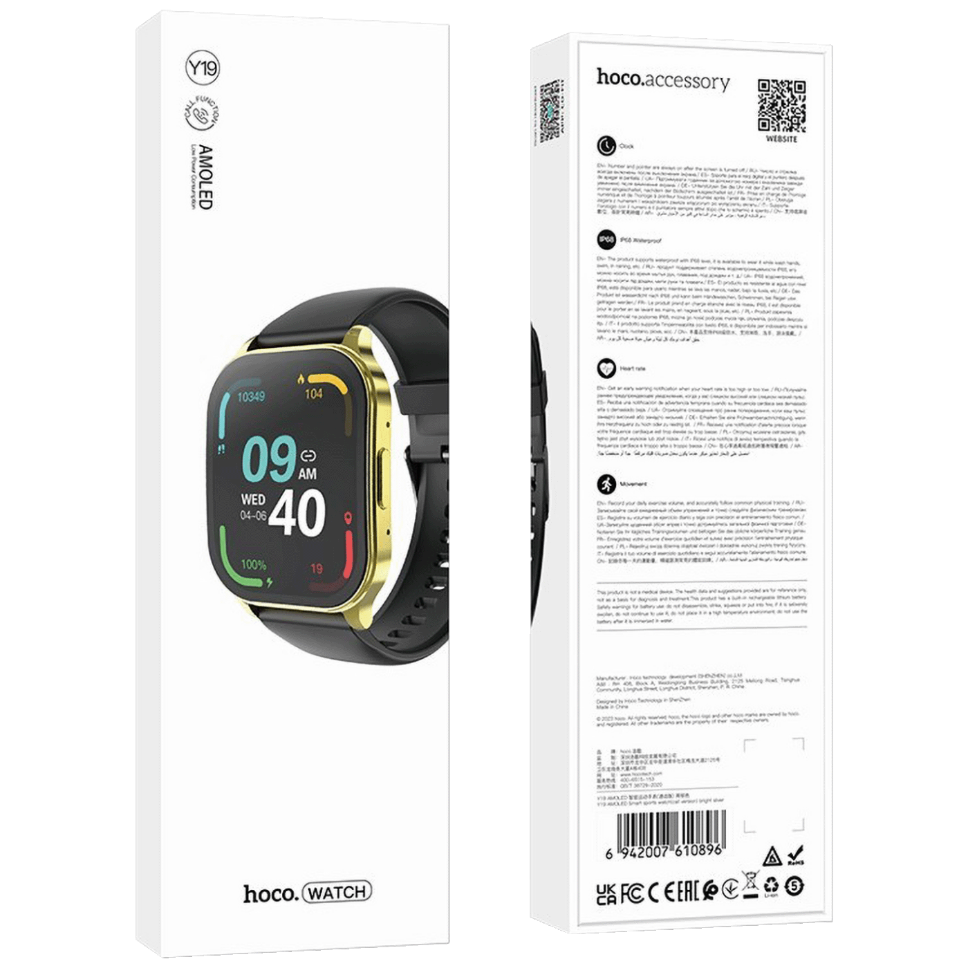Elegantan, vodootporan pametni sat Hoco Y19 sa ekranom u boji, višestruki sportski modovi, mjeri otkucaja srca i zasićenja te monitore za spavanje. Omogućava vam da upućujete pozive, upravljate pozivima, pretražujete kontakte, čitate poruke i obavještenja.