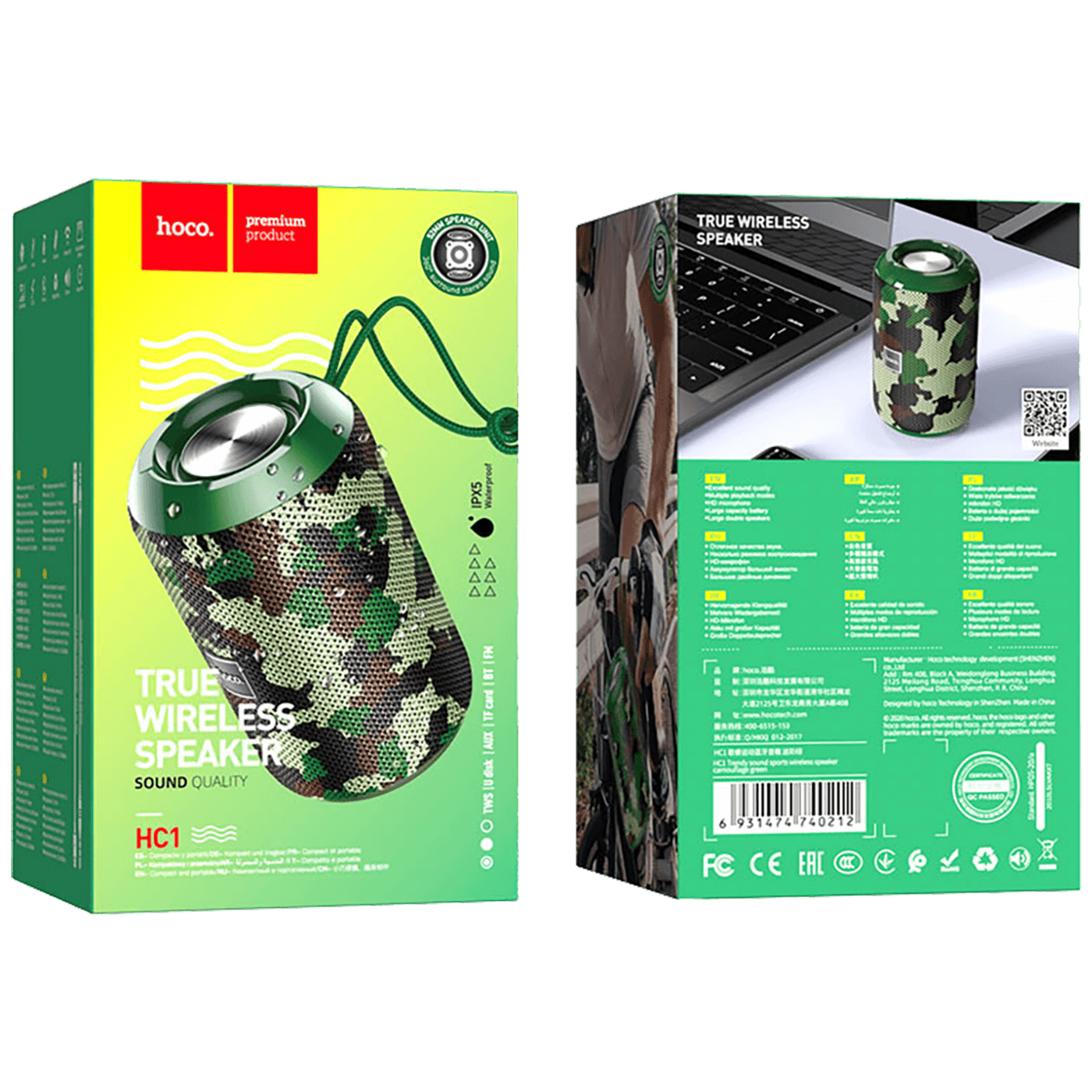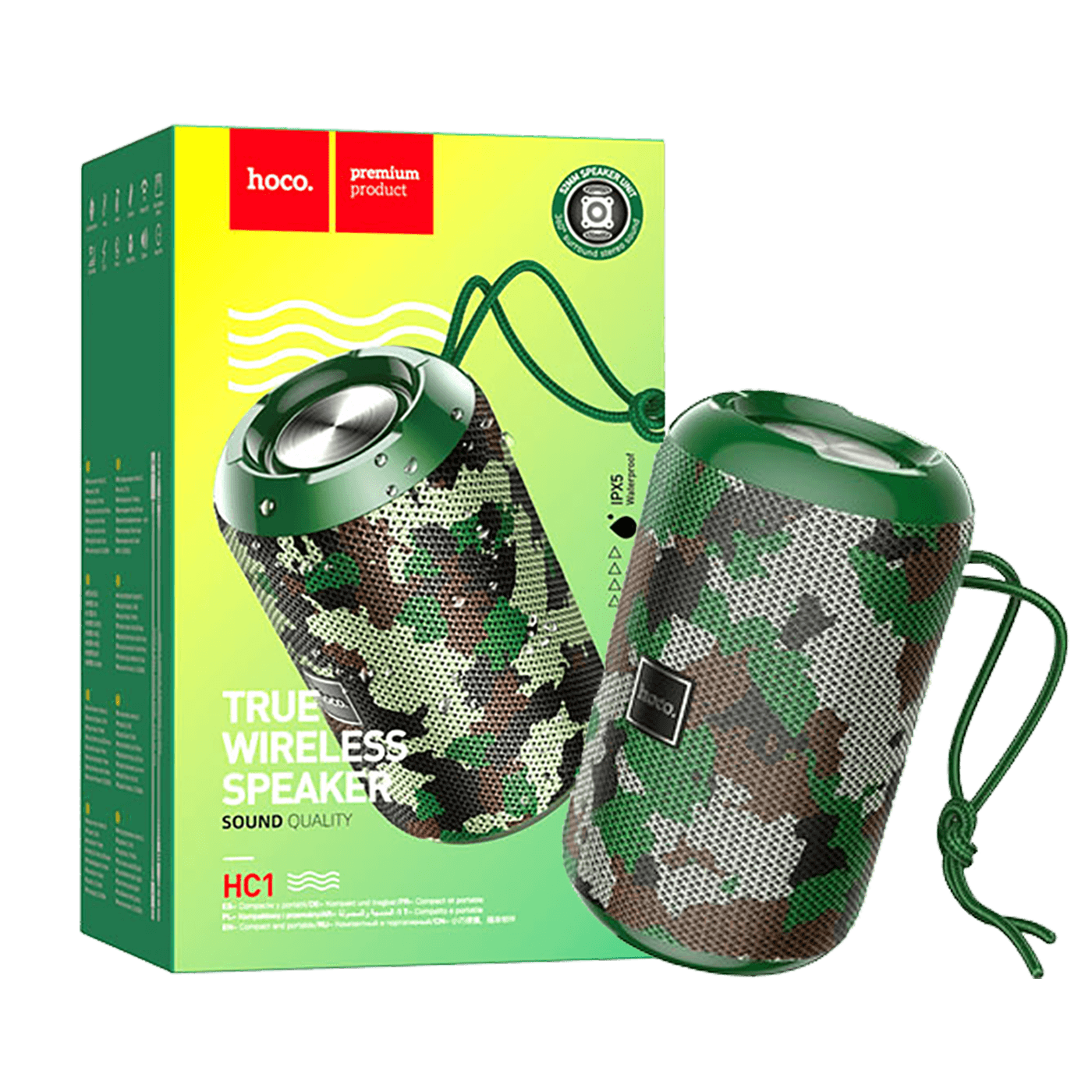 hoco. Zvučnik bežični, Hoco HC1, Bluetooth, 1200mAh, 5W, IPX5 - HC1 Camouflage Green