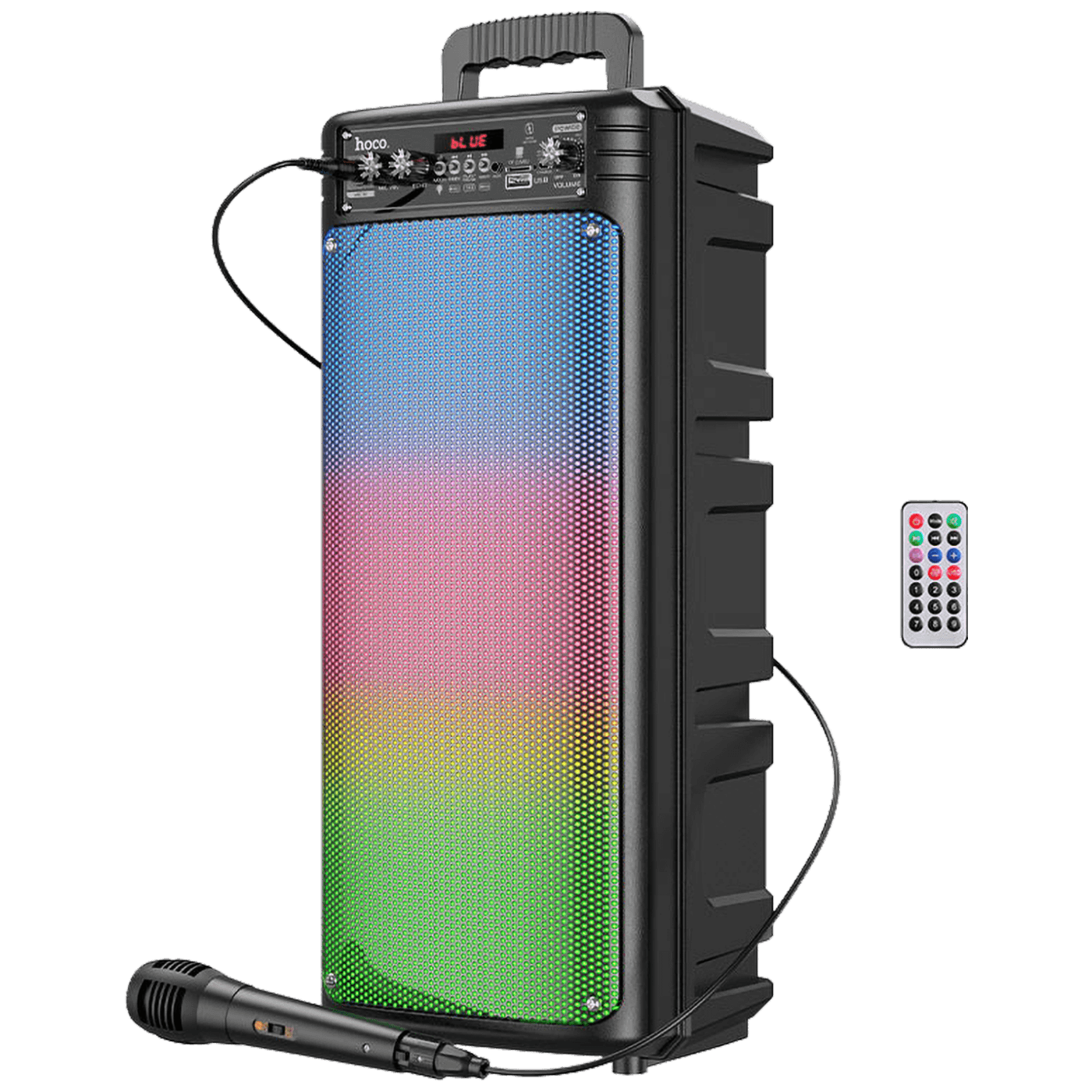 Bežični zvučnik sa žičnim mikrofonom, daljinski upravljač, snaga 2 x 10W, Bluetooth 5.0, TWS, FM, USB, microSD, AUX
