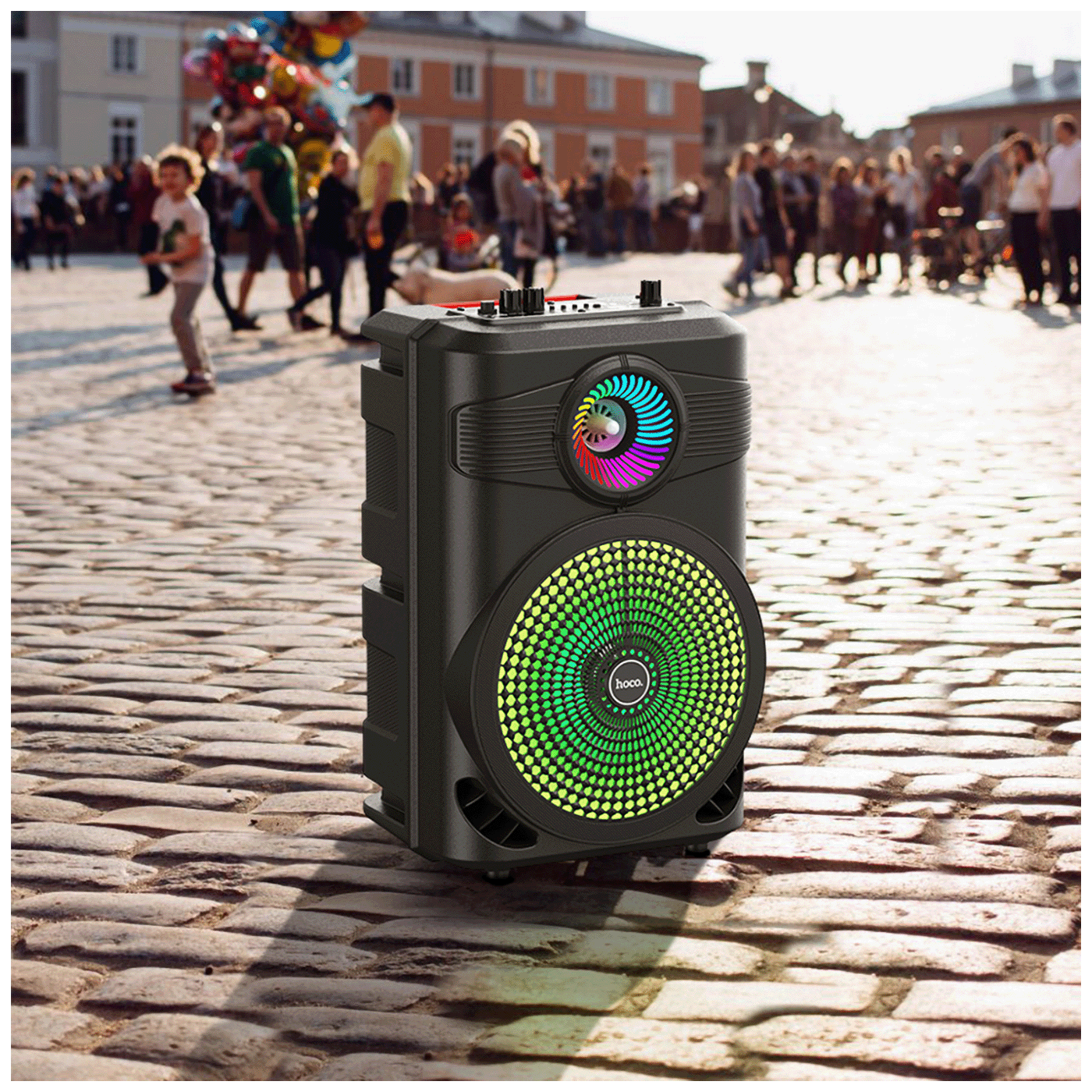 Opremljen je niskofrekventnim zvučnikom od 8 inča, koji pruža nevjerojatno bogat zvuk od 10 W. Vesela svijetla dodatnu notu večernjoj atmosferi.