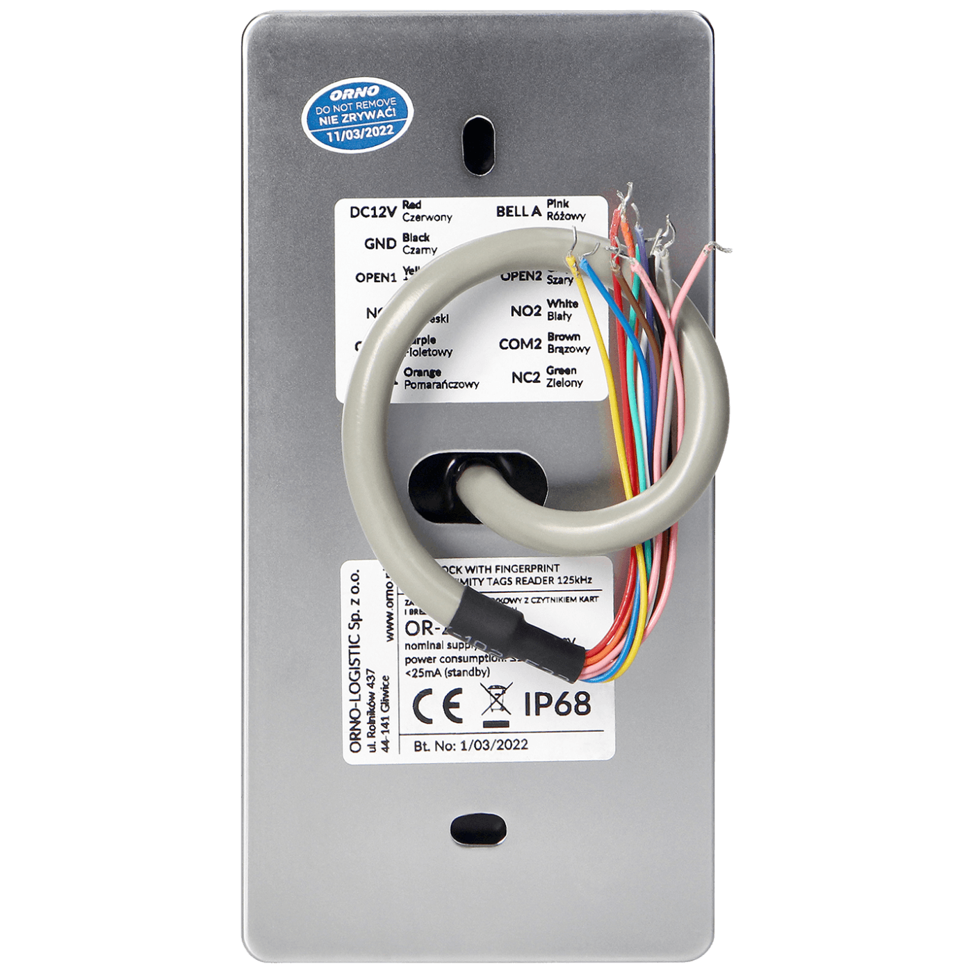 Napajanje 12V DC, žična veza, dodirne tipke, tipka za zvono, frekvencija 125 kHz, IP68, dimenzije 70 x 140 x 24 mm