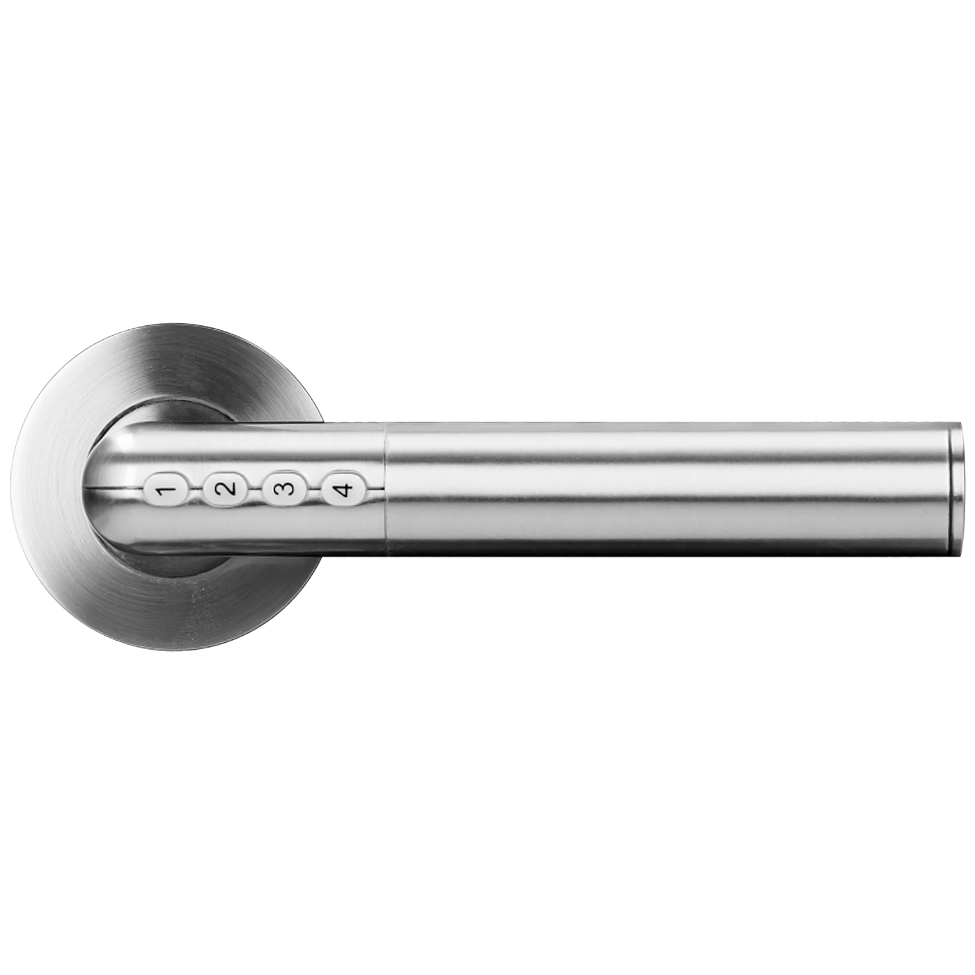 Ova pametna ručka ima ugrađenu kodnu bravu i pogodna je za ugradnju u lijeva i desna vrata, gdje se obično montira standardna ručka.