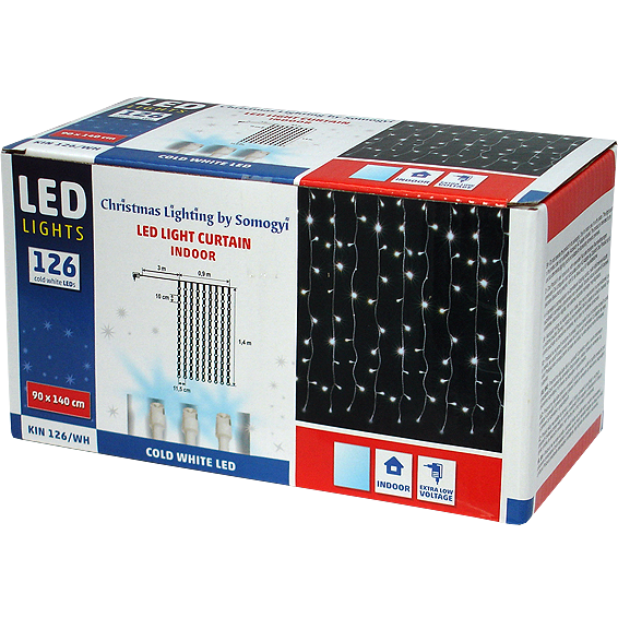 Dekorativna LED rasvjeta, za unutarnju upotrebu, ukupno 126 LED dioda, 9 žica po 14 dioda, boja svjetlosti bijela, napajanje DC adapter