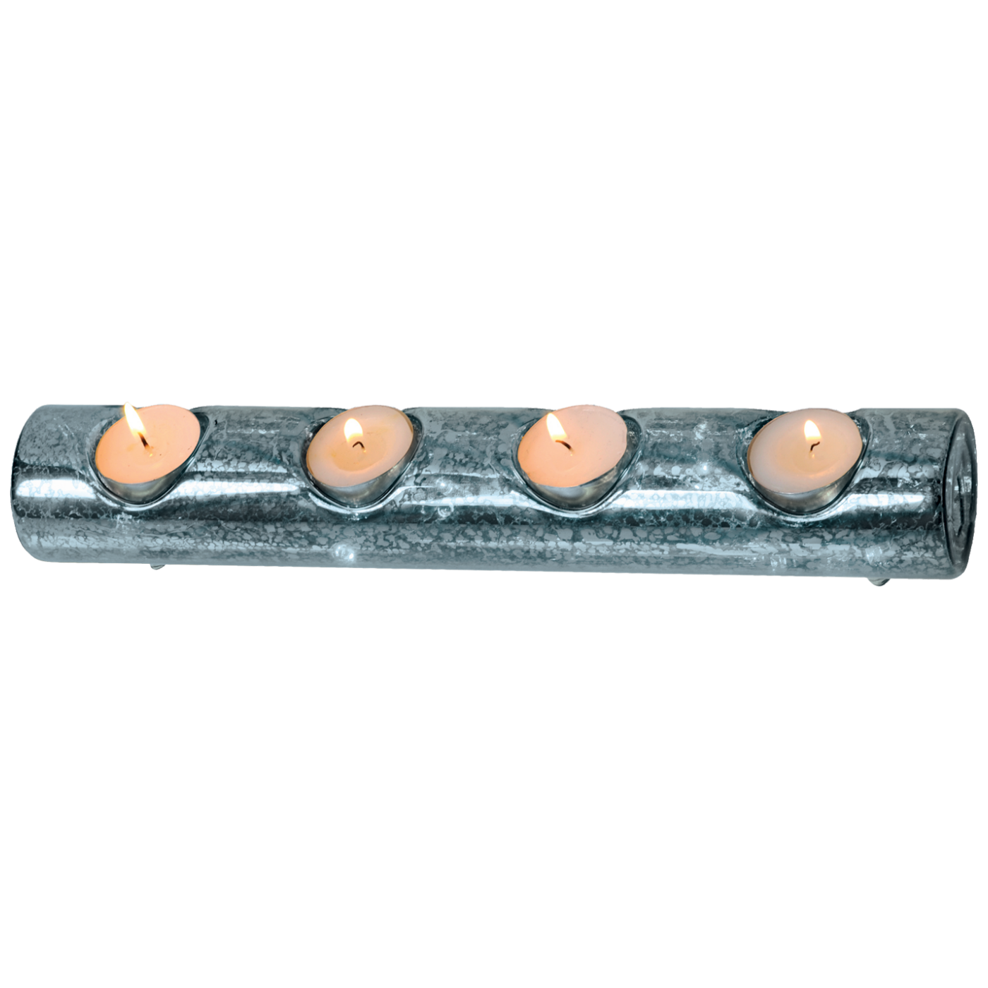 Dekorativna rasvjeta, stakleni svijećnjak za 4 ukrasne svijeće, , 10 LED bijelih lampica osvjetljava stakleni sviječnjak, dužina 33 cm, napajanje 2 x AA baterije