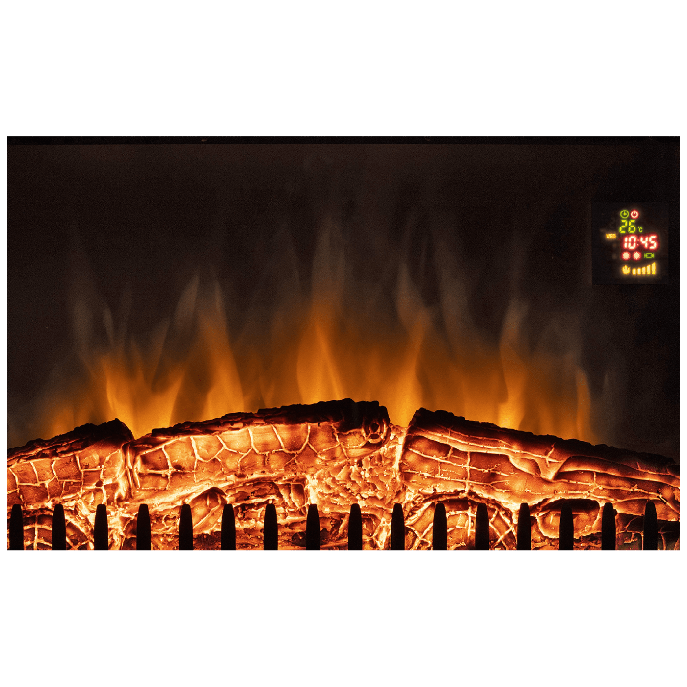 Elektični kamin (grijalica) sa ventilatorom, ugradbeni, snaga grijača 1000W / 2000W, realan efekt sagorijevanja drveta, efekt plamena i grijanje se može koristiti odvojeno, ručno i upravljanje preko daljinskog upravljača, LED izvor svjetlosti, 5 brzina svjetlosnih efekata, tjedni program, detekcija otvorenog prozora, dimenzije 600 x 440 x 200 mm, ugradbene dimenzije 595 x 435 mm, napajanje 230 VAC / 50Hz