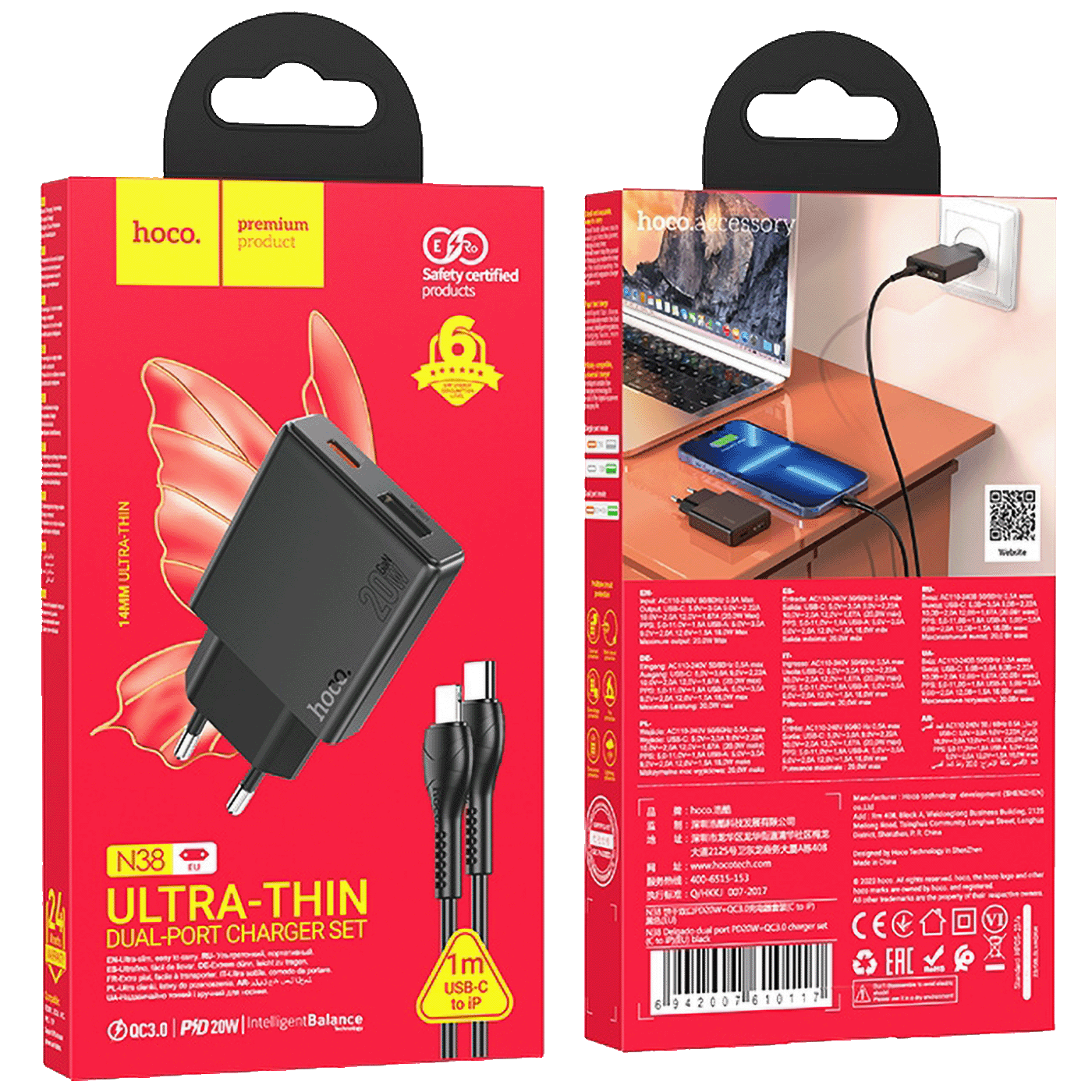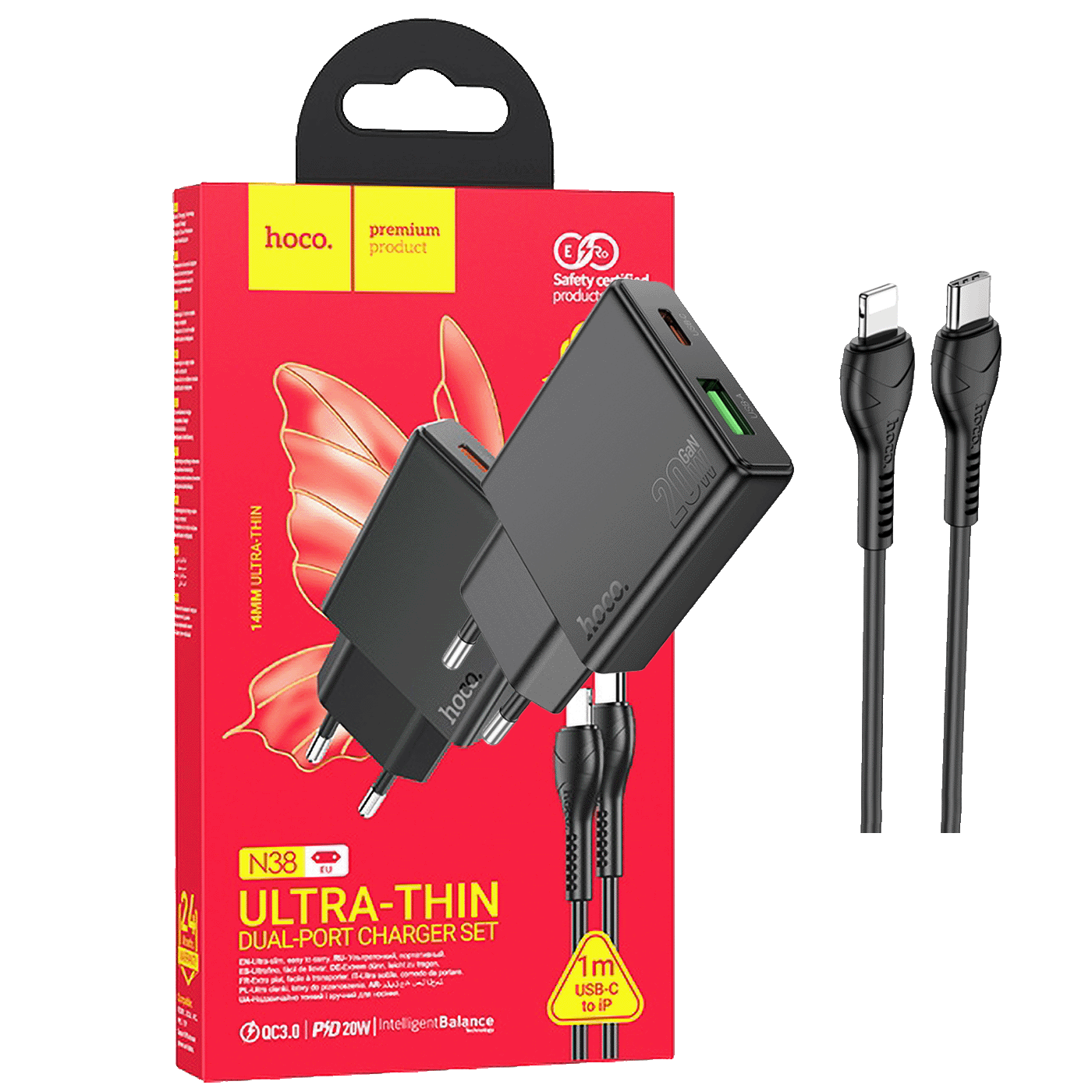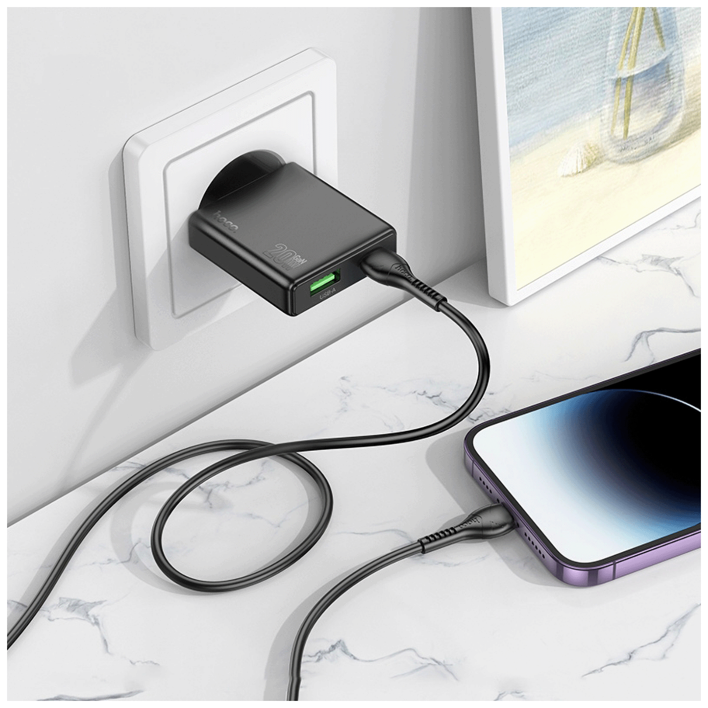 hoco. Punjač kućni sa Lightning kabelom, brzi, PD20W, QC3.0 - N38 Delgado type C to Lightning