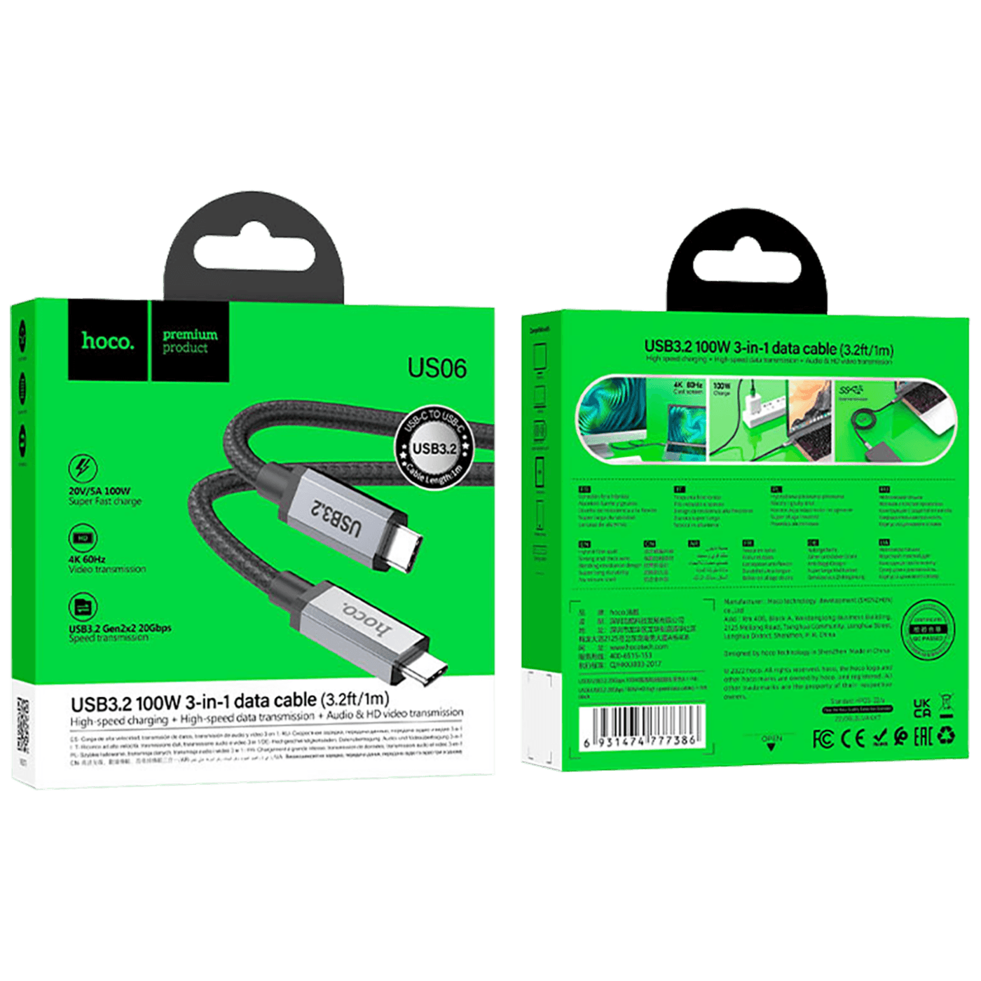 hoco. USB kabl za smartphone, 100W, US06, USB3.2 type C, 1 met. - US06 1M