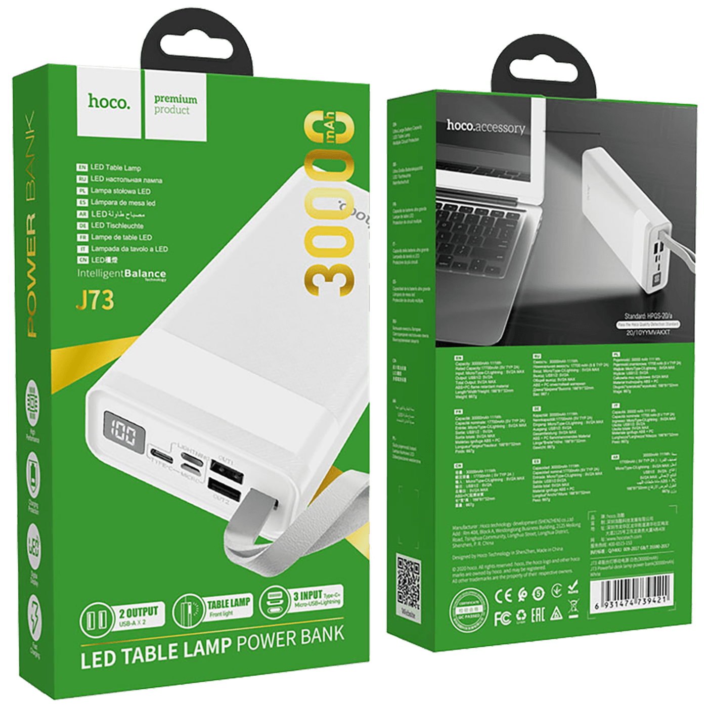 hoco. Punjač prijenosni sa lampom, Hoco j73, 30000mAh, 2A / 2A - J73 Powerful, White
