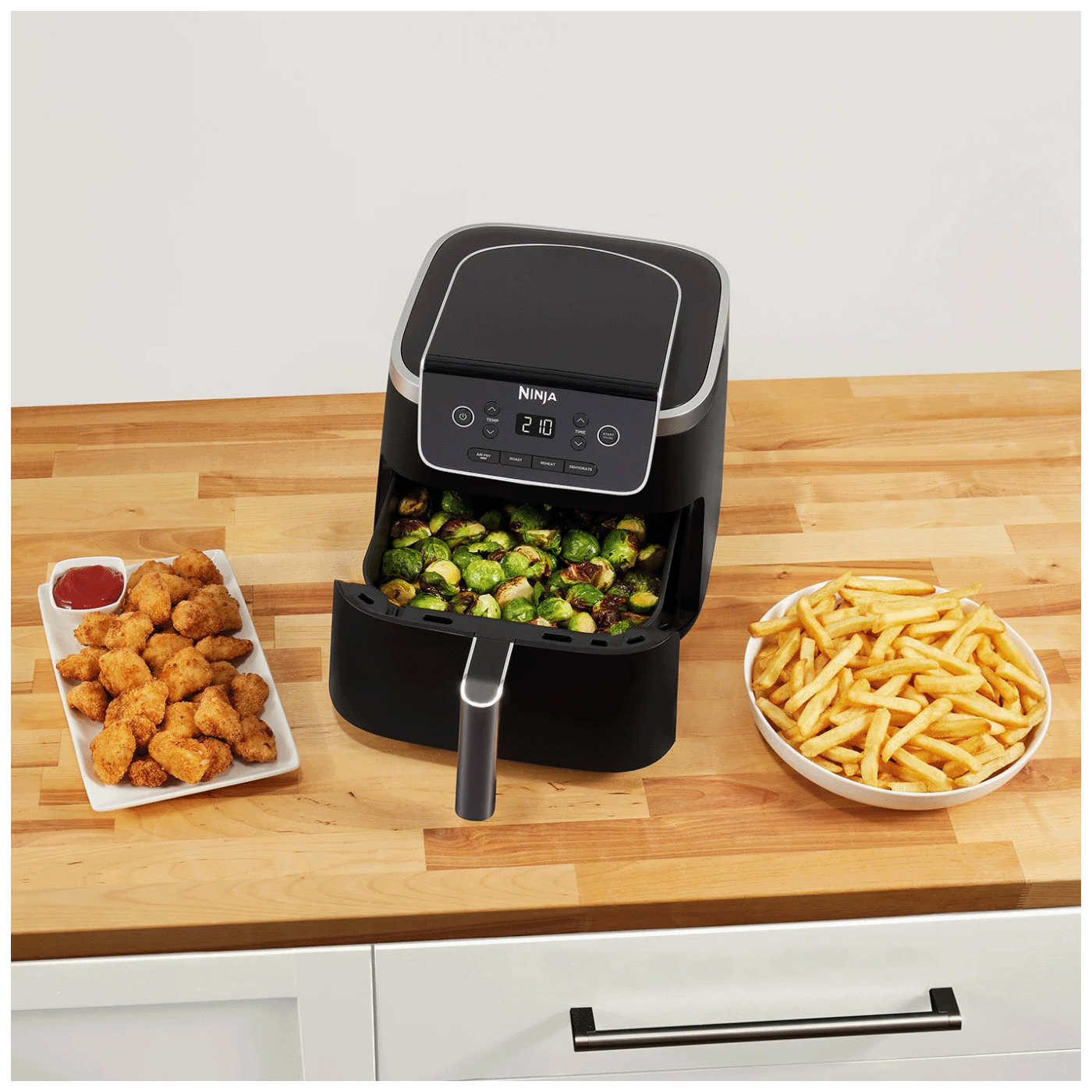 Hrskavo u trenu. Ninja Air Fryer PRO kuha svu hranu brzo i s malo ili bez ulja, za zdravije prženje - do 75% manje masnoće od konvencionalnih metoda prženja*.