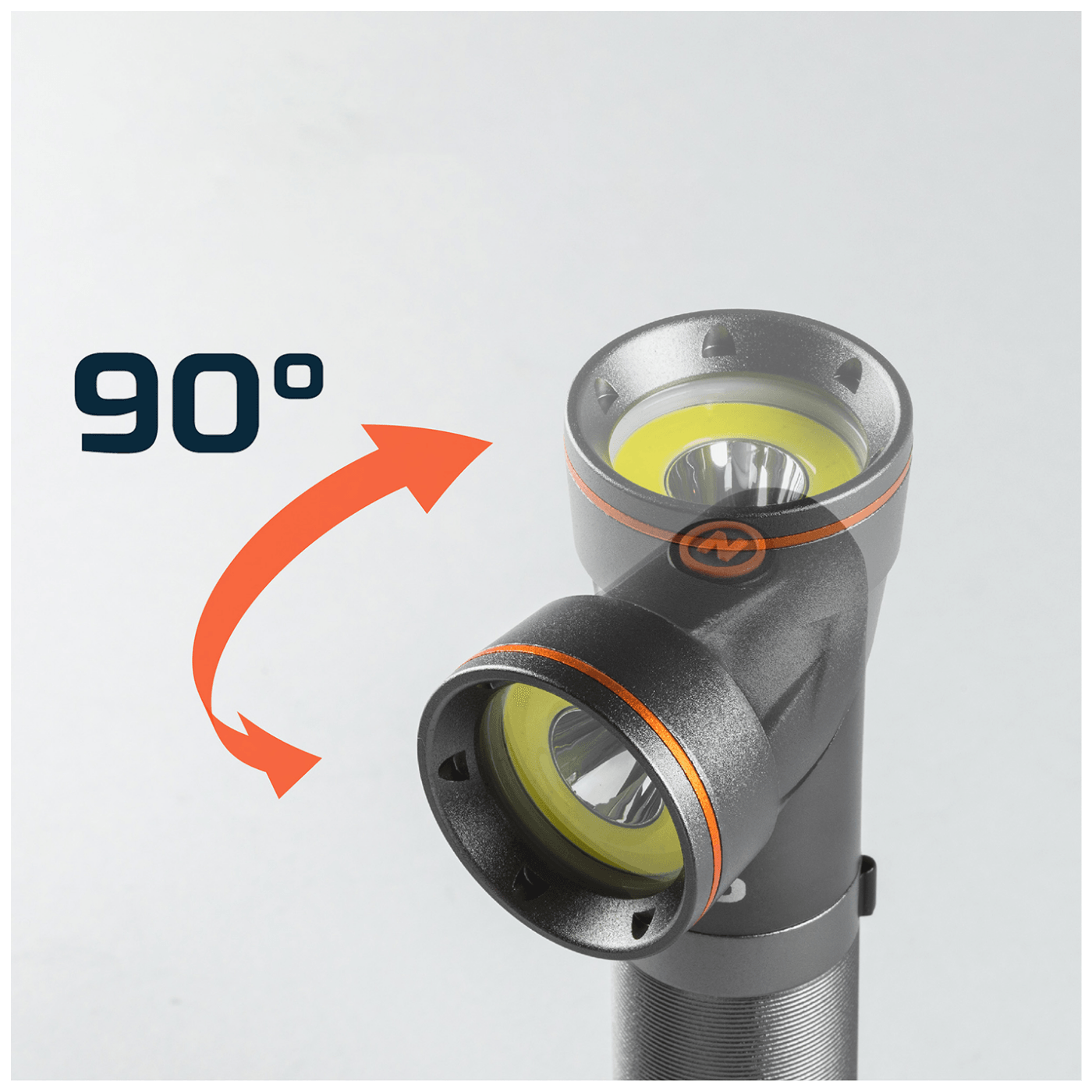 Glava koja se savija za 90 stupnjeva i podesiva svjetlina omogućuju nam da osvjetlimo teško uočljiva područja.