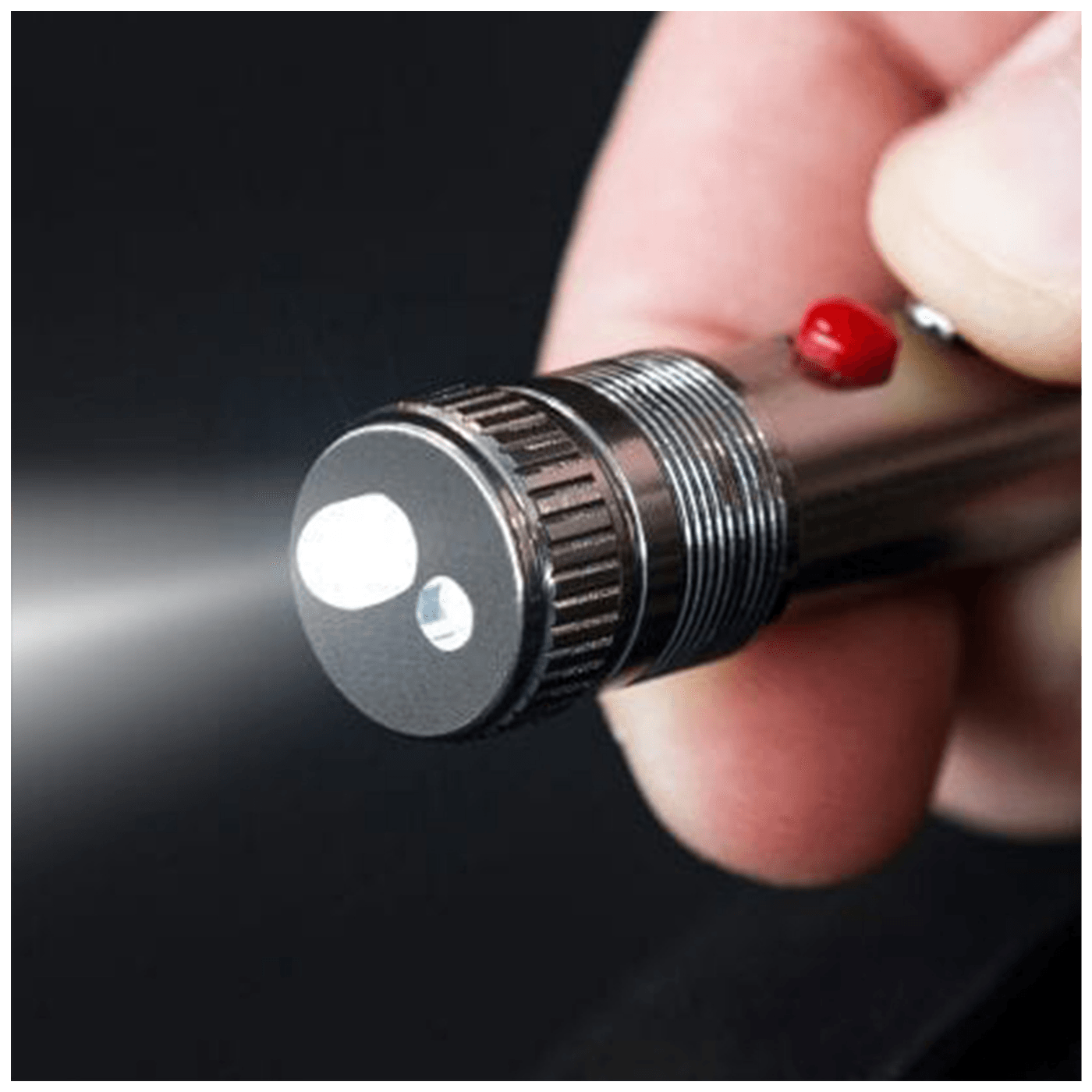 Crvena laserska zraka svijetli pritiskom na gumb na svjetiljciv, koja je pogodna za prezentacije, demonstracije i precizno izvođenje školskih predavanja.