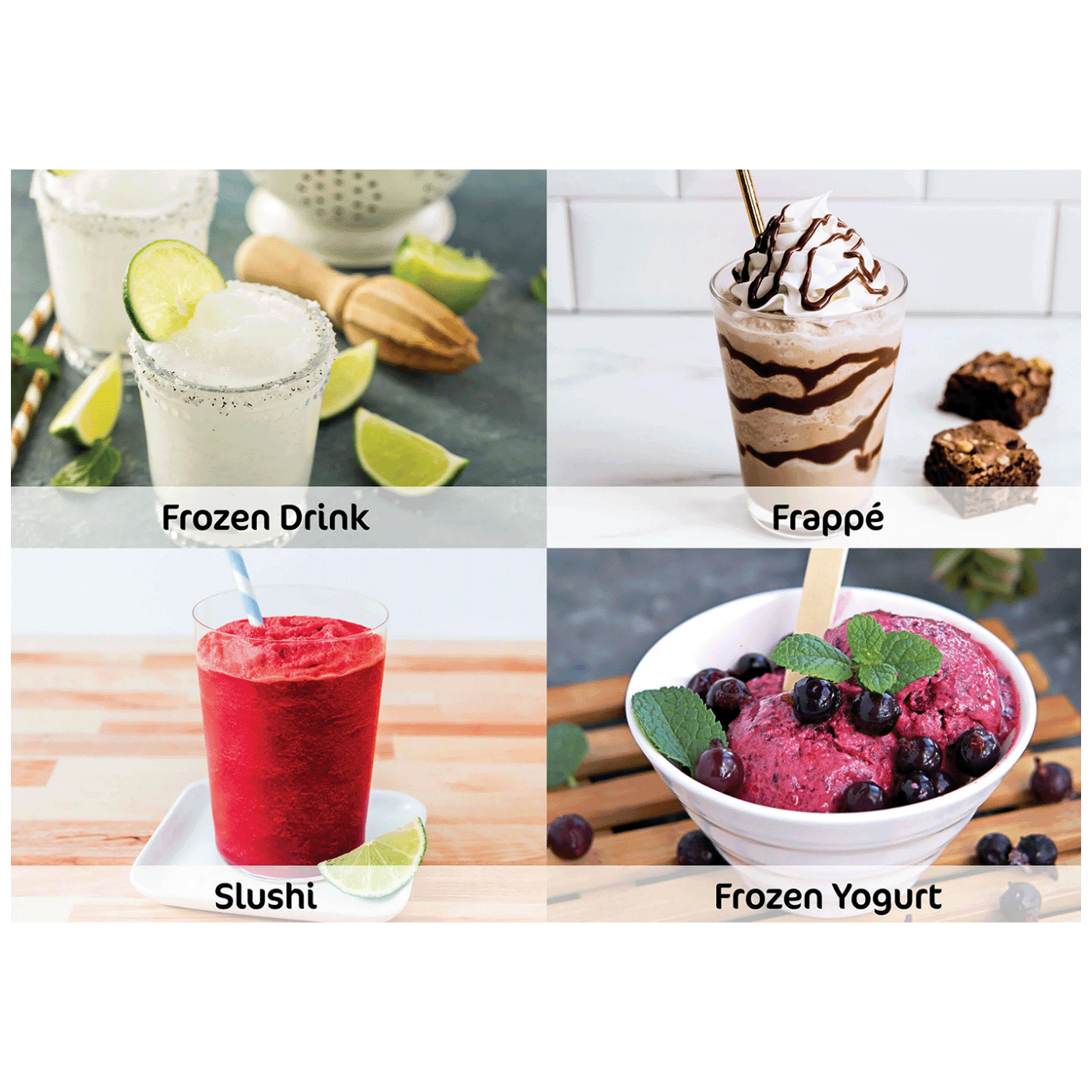 Uživajte u svim klasičnim CREAMi unaprijed postavljenim postavkama plus 4 dodatna programa - Frozen Drink, Slushi, Frappe i Frozen Yoghurt.