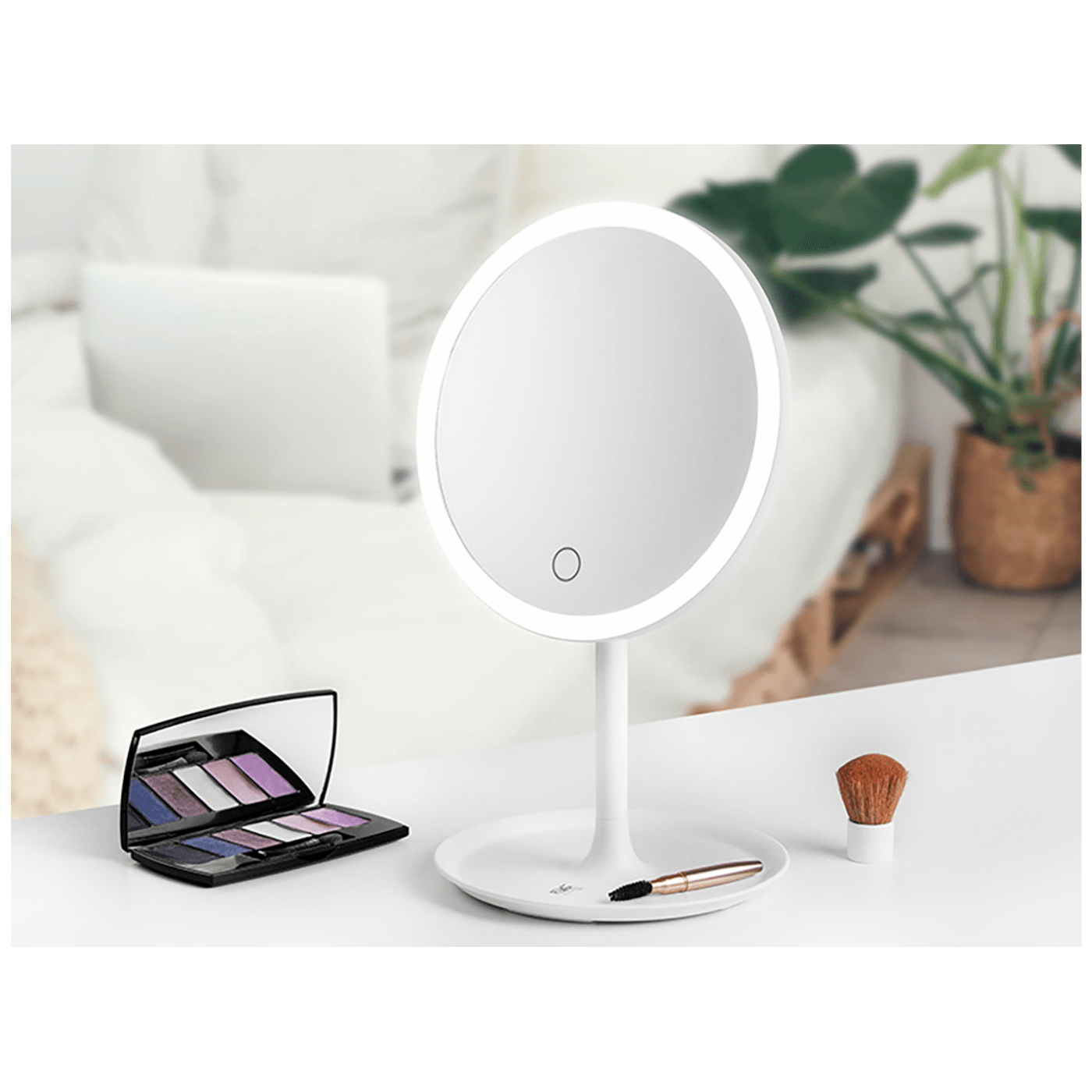 Kozmetičko ogledalo sa LED diodama, temperatura boje 500-7000 K, izvor svjetlosti 30 2835 SMD dioda, boja svjetla bijela, podesivi ugao svjetla 60-80°, jačina svjetlosti 50 lumen, baterija 1000 mAh, punjenje putem USB priključka, materijal izrade ABS / staklo, dimenzije 190 x 310 mm, težina 368 g