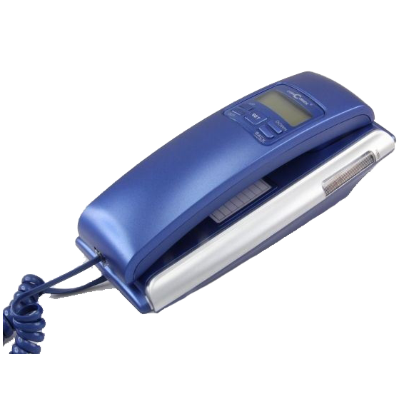 Analogni telefon, žičani, plava boja, Caller ID (prikaz broja), LCD zaslon 12 znamenki, imenik (memorija 38 brojeva), brzo biranje, funkcija za hitne slučajeve, noćni način rada, višestruki zvukovi zvona / melodije, isključenje mikrofona, tipke za glasnoću.