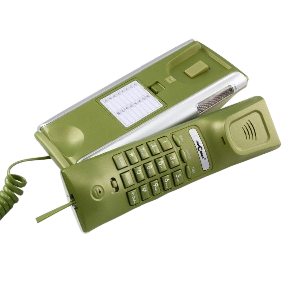 Analogni telefon, žičani, zelena boja, Caller ID (prikaz broja), LCD zaslon 12 znamenki, imenik (memorija 38 brojeva), brzo biranje, funkcija za hitne slučajeve, noćni način rada, višestruki zvukovi zvona / melodije, isključenje mikrofona, tipke za glasnoću.