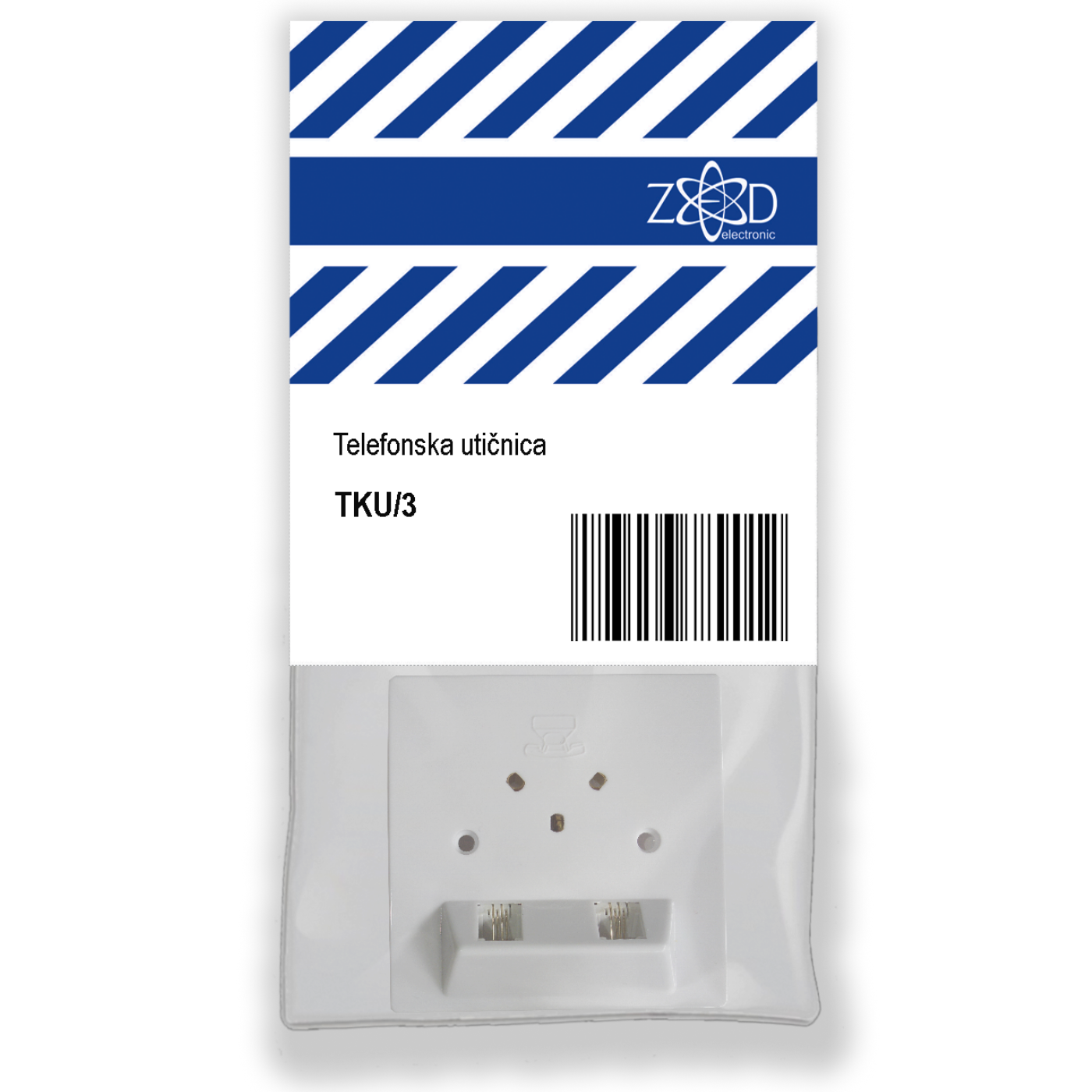 Zidna telefonska podžbuk utičnica, 1 x tropolni utičnica + 2 x mikroutičnica za telefon, Blister pakiranje sa EAN kodom, 1 kom.