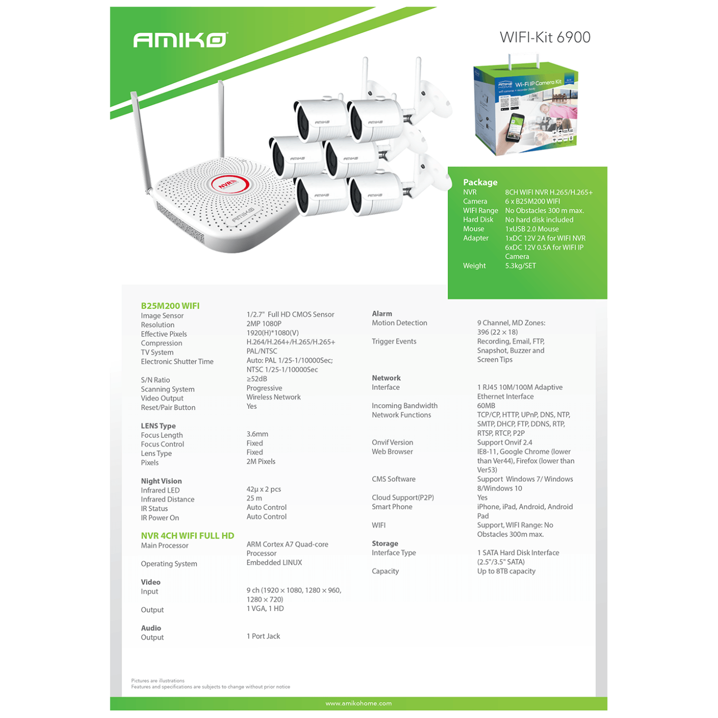Amiko Home Set za video nadzor, 2 Mpixel, 6 x bullet cam., 9 ch, WiFi - WIFI KIT-6900