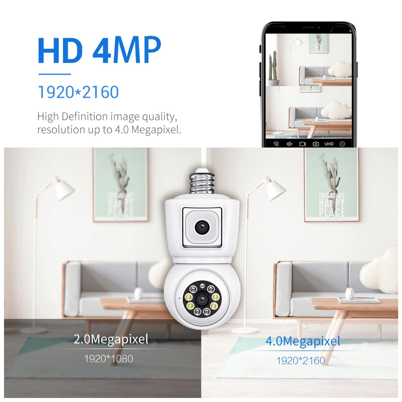 Kamera za video nadzor, detektor pokreta, 4Mpixel, E27, WiFi