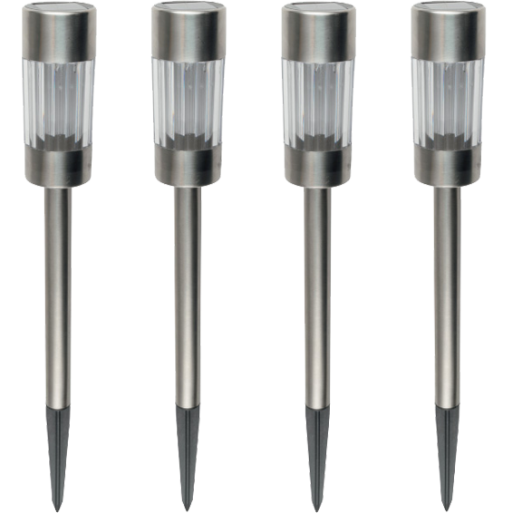 Solarna vrtna LED lampa, set 4 komada, automatsko uključivanje / isključivanje, ugrađena solarna ćelija i punjač za bateriju, zamjenjiva 2/3 AA NI-Mh baterija 1,2V / 300mAh, otporna na vremenske uvjete, izvor svjetlosti 1 x LED, kombinacija metal / plastično tijelo