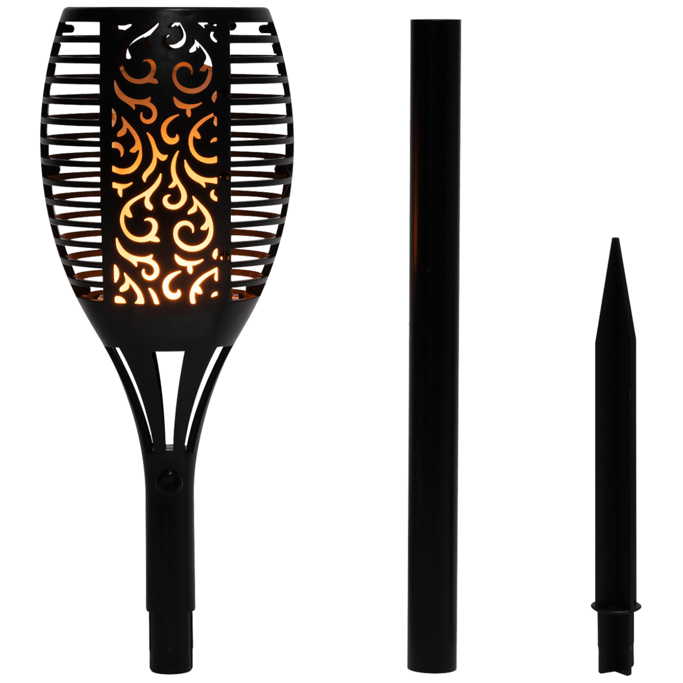 Solarna dekorativna svjetiljka, realan efekt baklje, automatsko uključivanje i isključivanje, ugrađena solarna ćelija i punjač za bateriju, otporno na atmosferske utjecaje, ugrađena Li-Ion baterija 3.7 V / 1200 mAh, izvor svjetla 72 LED žute boje, ubodna u zemlju, dimenzije Ø13.5 x 78 cm