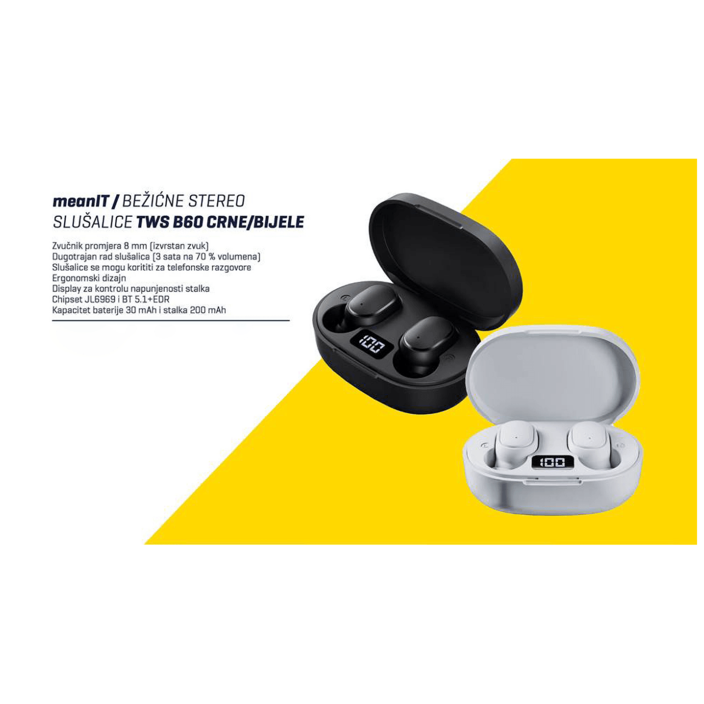 MeanIT Slušalica bežična, Bluetooth v5.1 - TWS B60 Black