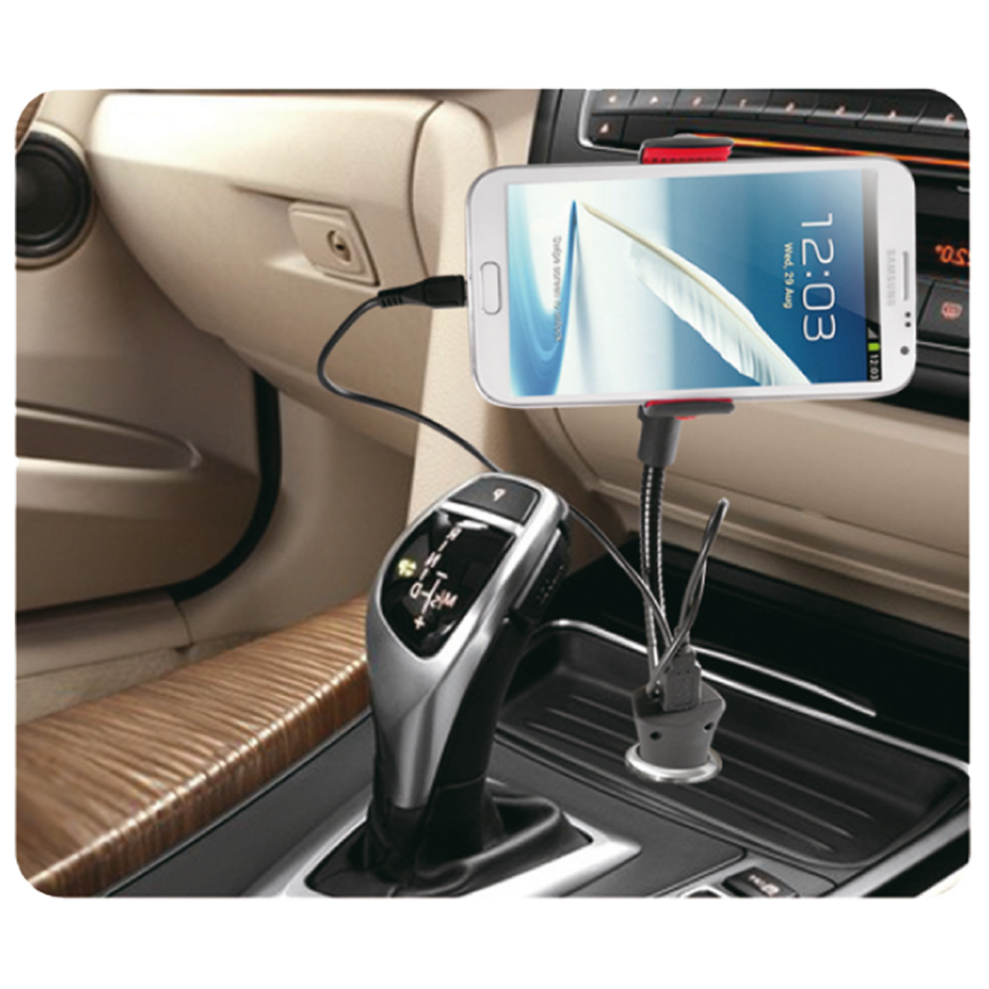 Držač mobilnih uređaja sa punjačem, jednostavno rješenje, podesiv u svim smjerovima, upotrebljiv za uređaje širine do 100mm, fleksibilni stub i okretljiva glava 360° , ulazni napon 12 / 24V, izlazni napon 5V / 1.500mA